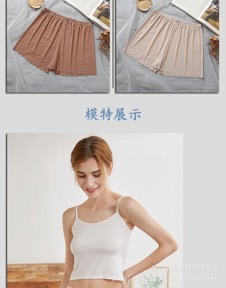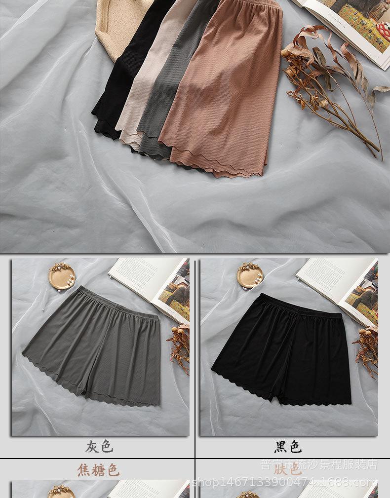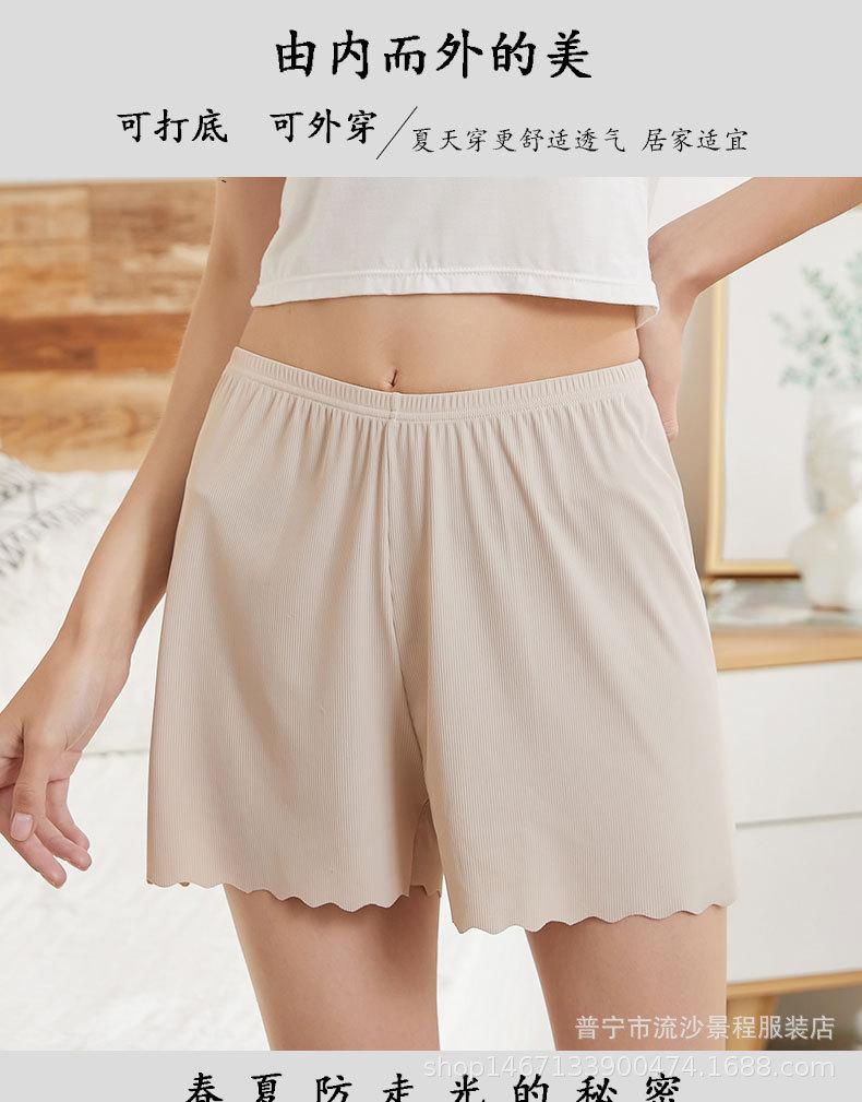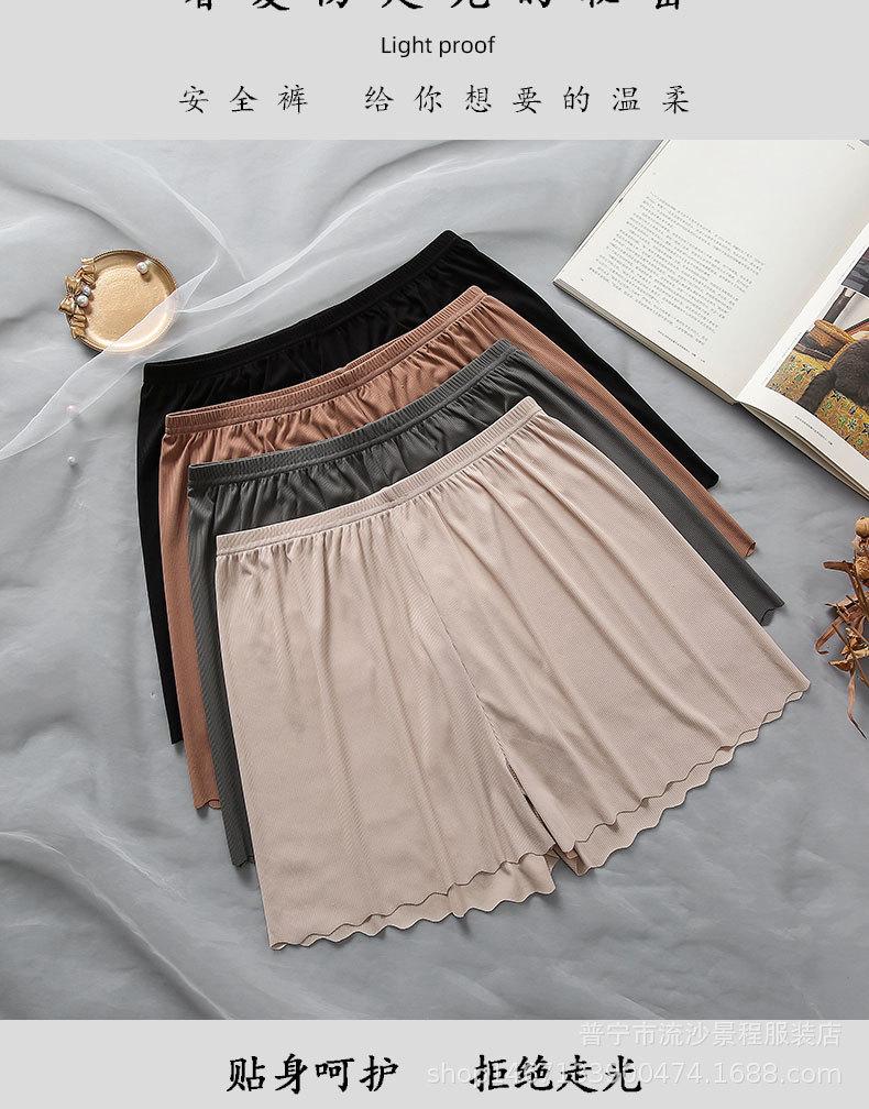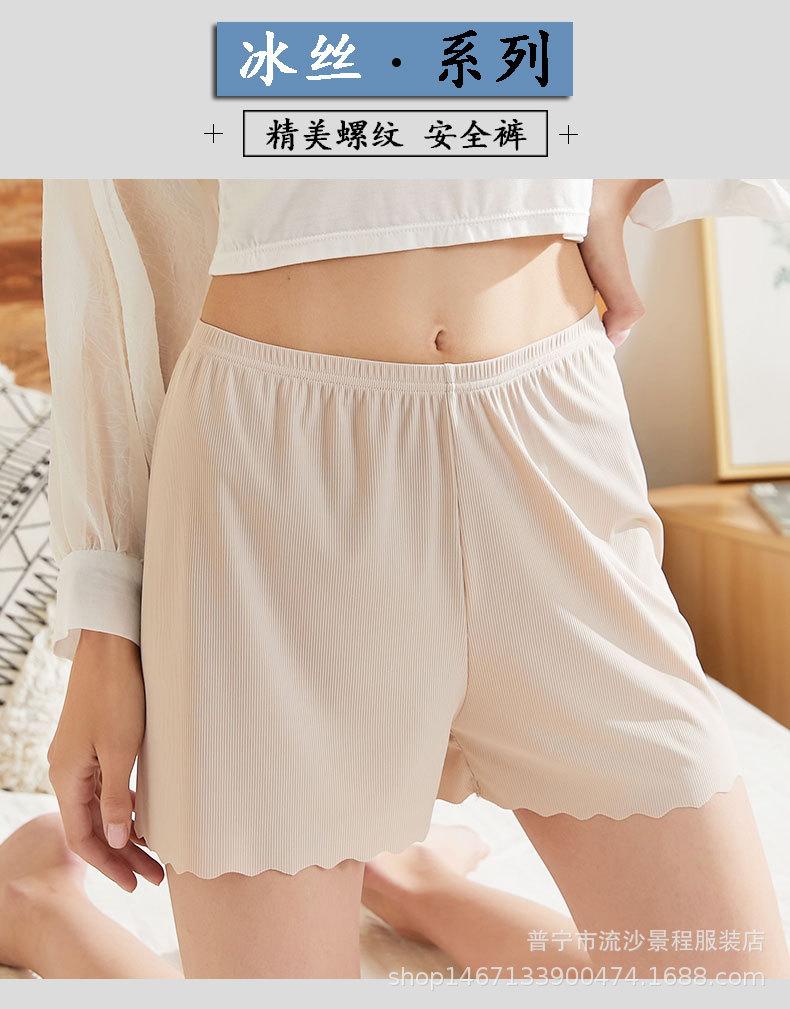 2021 Verano Seda de Hielo Sin Costuras Hilo de Alta Elasticidad Talla Grande Holgado Ropa Exterior Pantalones de Seguridad Borde Ondulado Shorts Básicos de Mujer