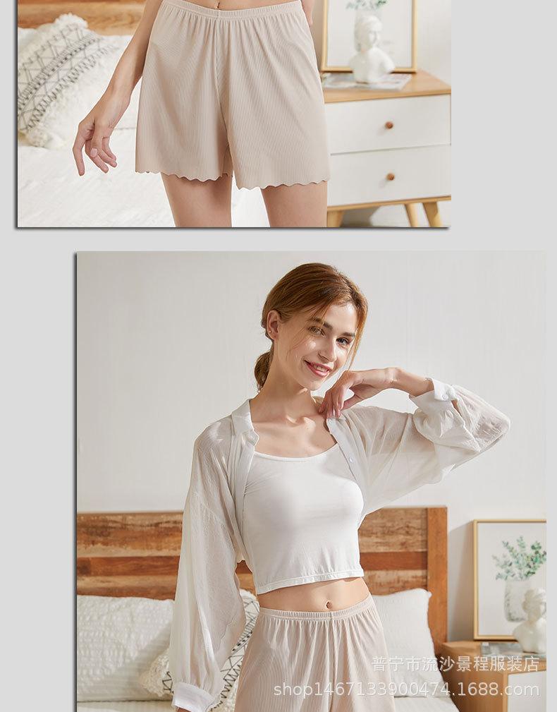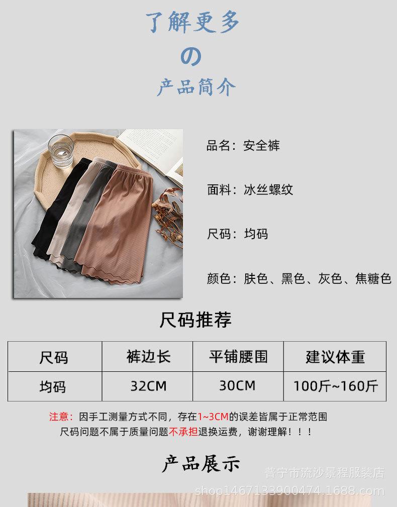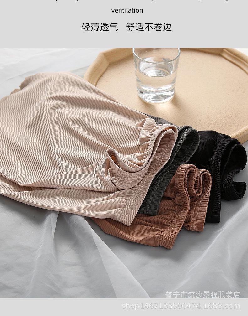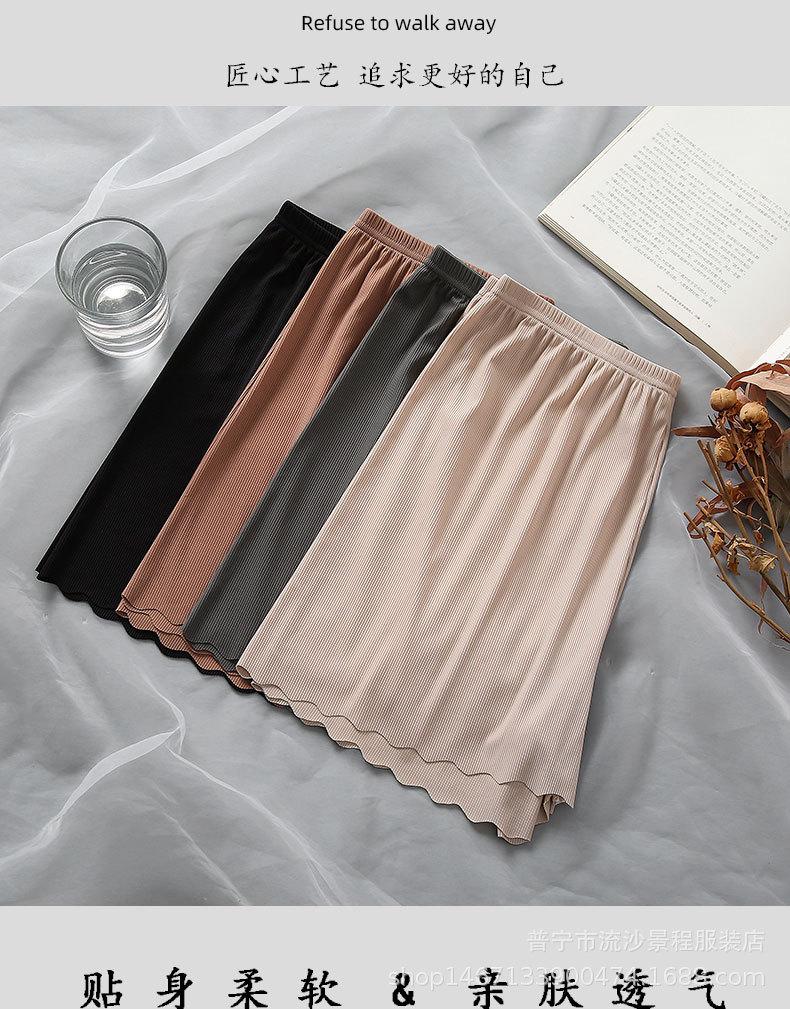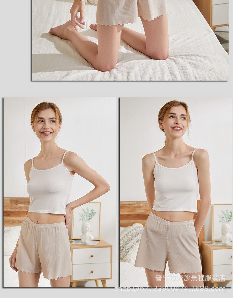 2021 Verano Seda de Hielo Sin Costuras Hilo de Alta Elasticidad Talla Grande Holgado Ropa Exterior Pantalones de Seguridad Borde Ondulado Shorts Básicos de Mujer