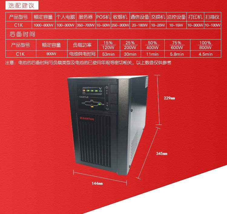 Sante Ups Fuente de Alimentación Ininterrumpida C1K Online Estabilizado de Voltaje Retardo 1Kva 800W Batería Incorporada Castle 1K
