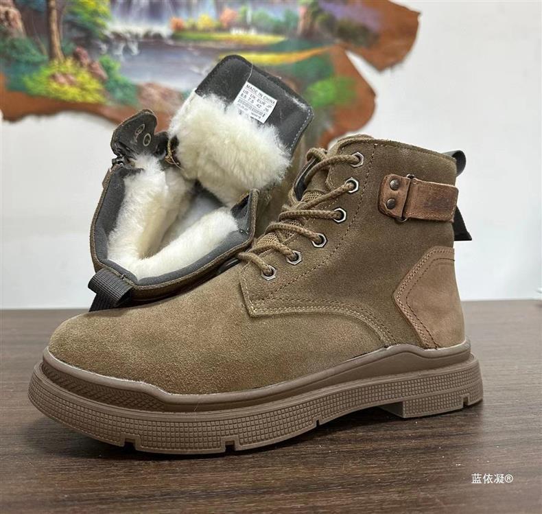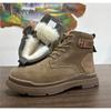 Botas de Trabajo de Cuero Genuino para Exterior Gruesas y Cálidas con Forro Polar, Zapatos Casuales Británicos Martin de Caña Alta de Algodón, Botas de Nieve Extra Gruesas para Hombre