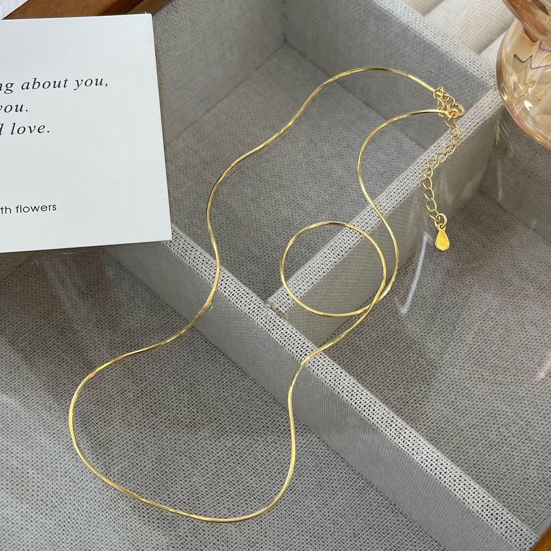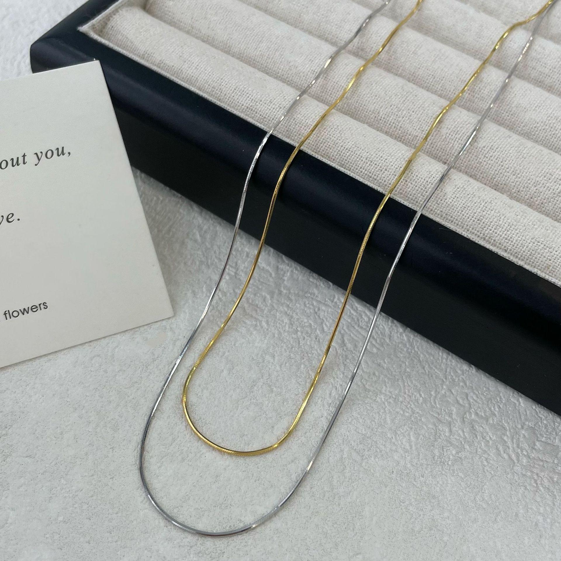 Collar de clavícula simple de plata esterlina S925 con cadena de hueso de serpiente versátil, cadena lisa apilada, collar para mujer Ins Niche