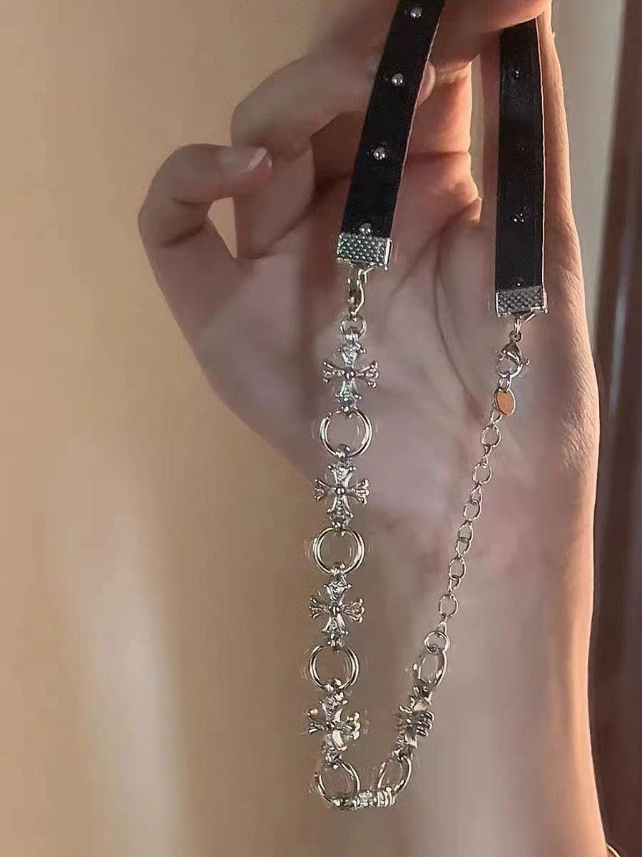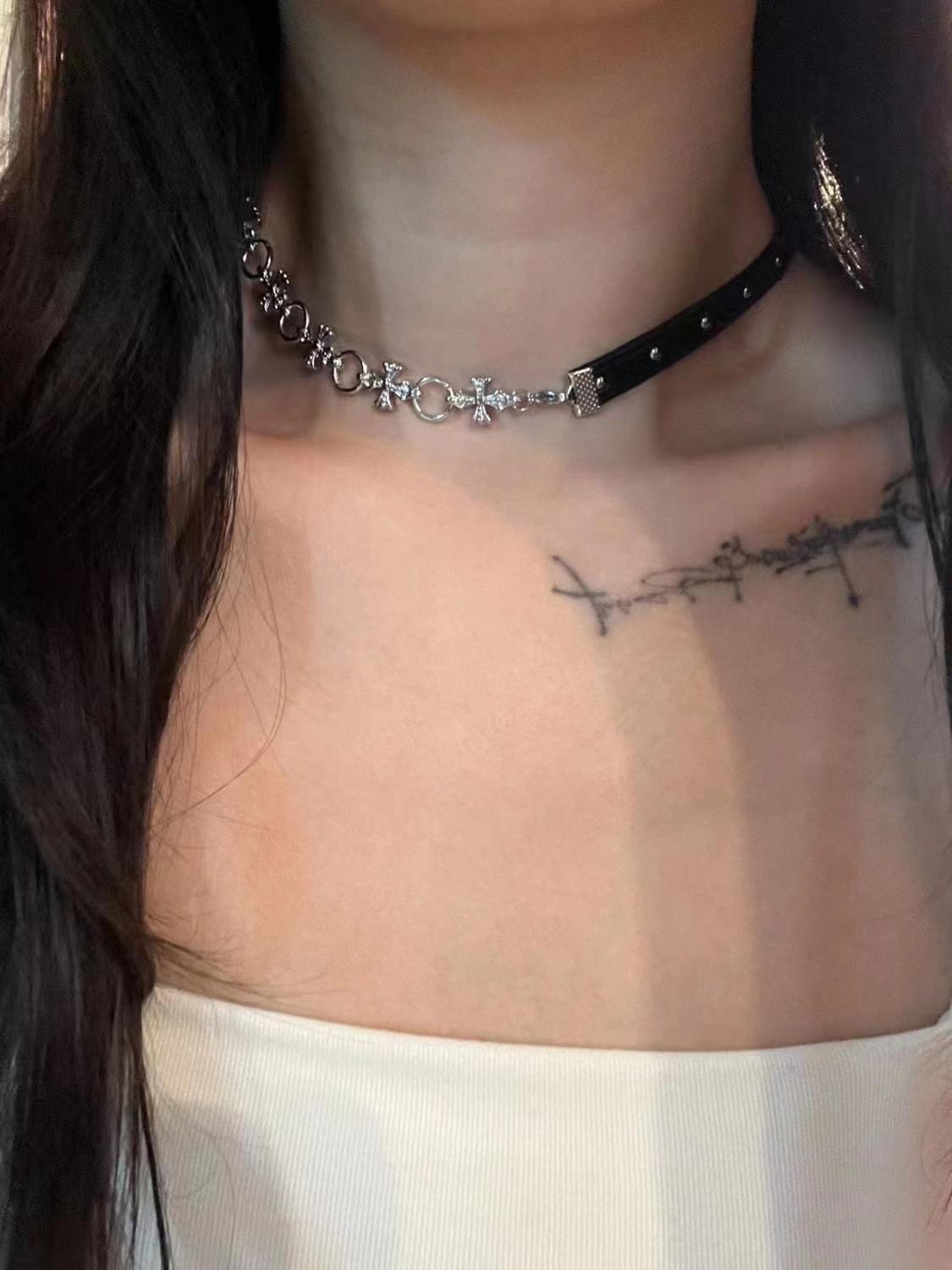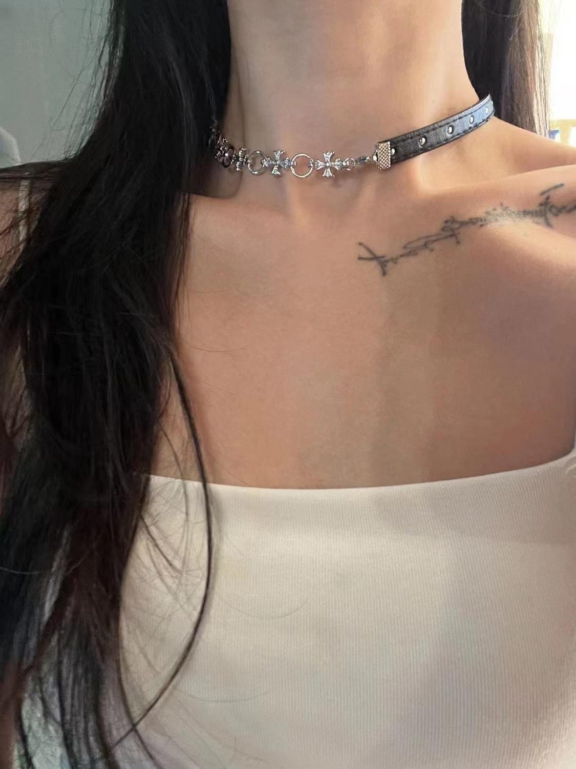 Collar de Cuero PU con Empalme de Flores Cruzadas Asimétricas de Estilo Frío Cadena Corta para el Cuello Cadena para la Clavícula Joyería de Estilo Dulce y Cool 2024