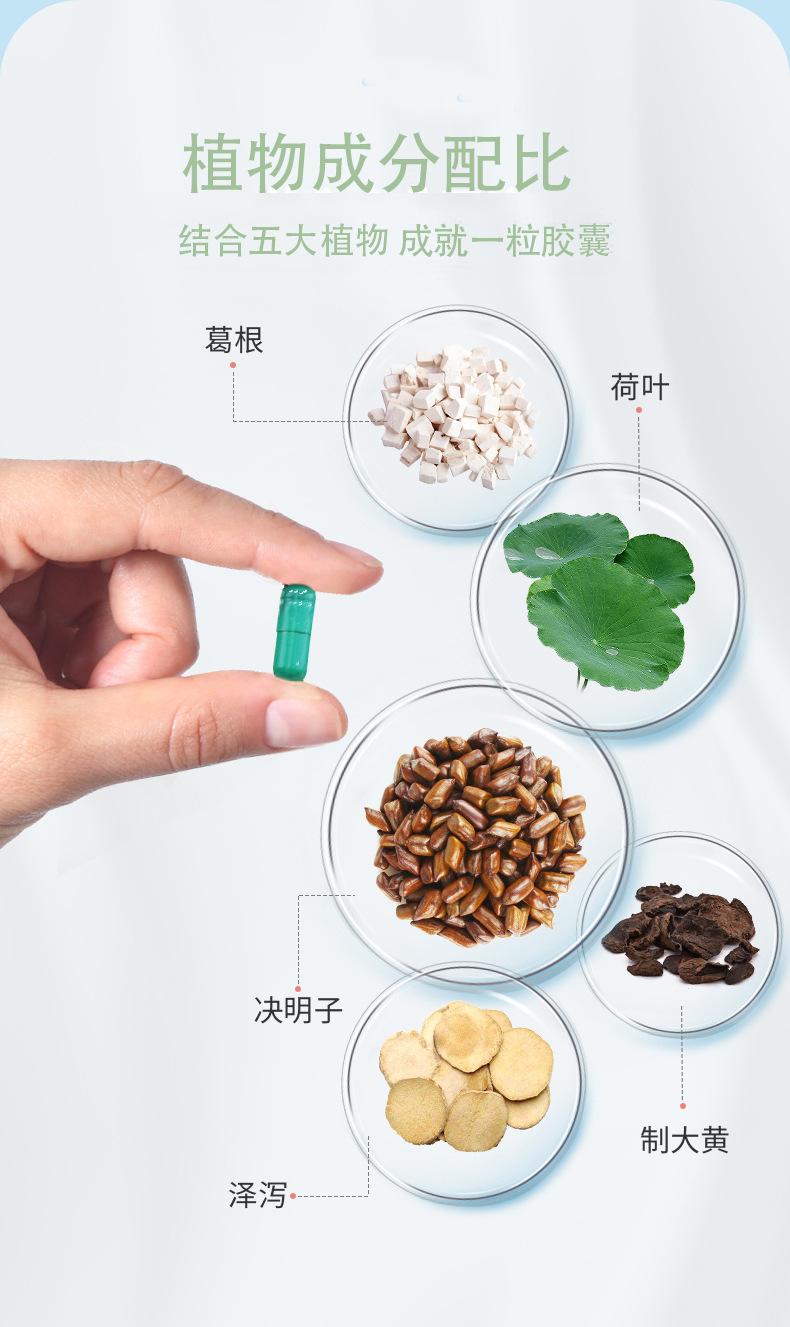 Cassia seed, Alisma orientalis, lotus leaf, rhubarb, kudzu root