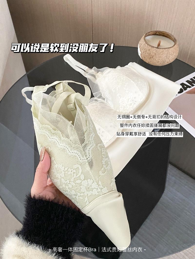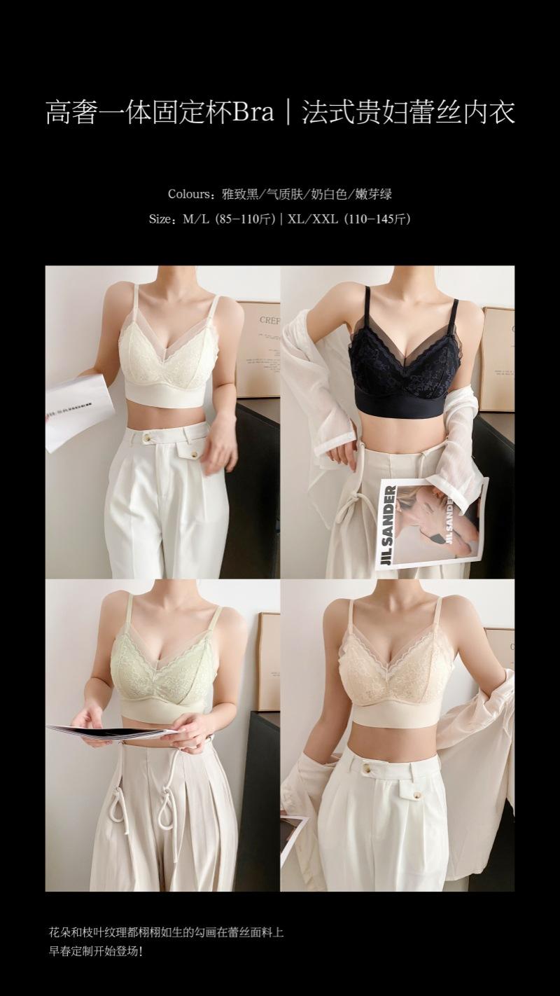 Ropa interior de encaje para dama de estilo francés con tirantes de sujetador envueltos en el pecho, espalda de belleza integrada, copa fija, soporte superior push up sin aro de acero, parte superior de tubo