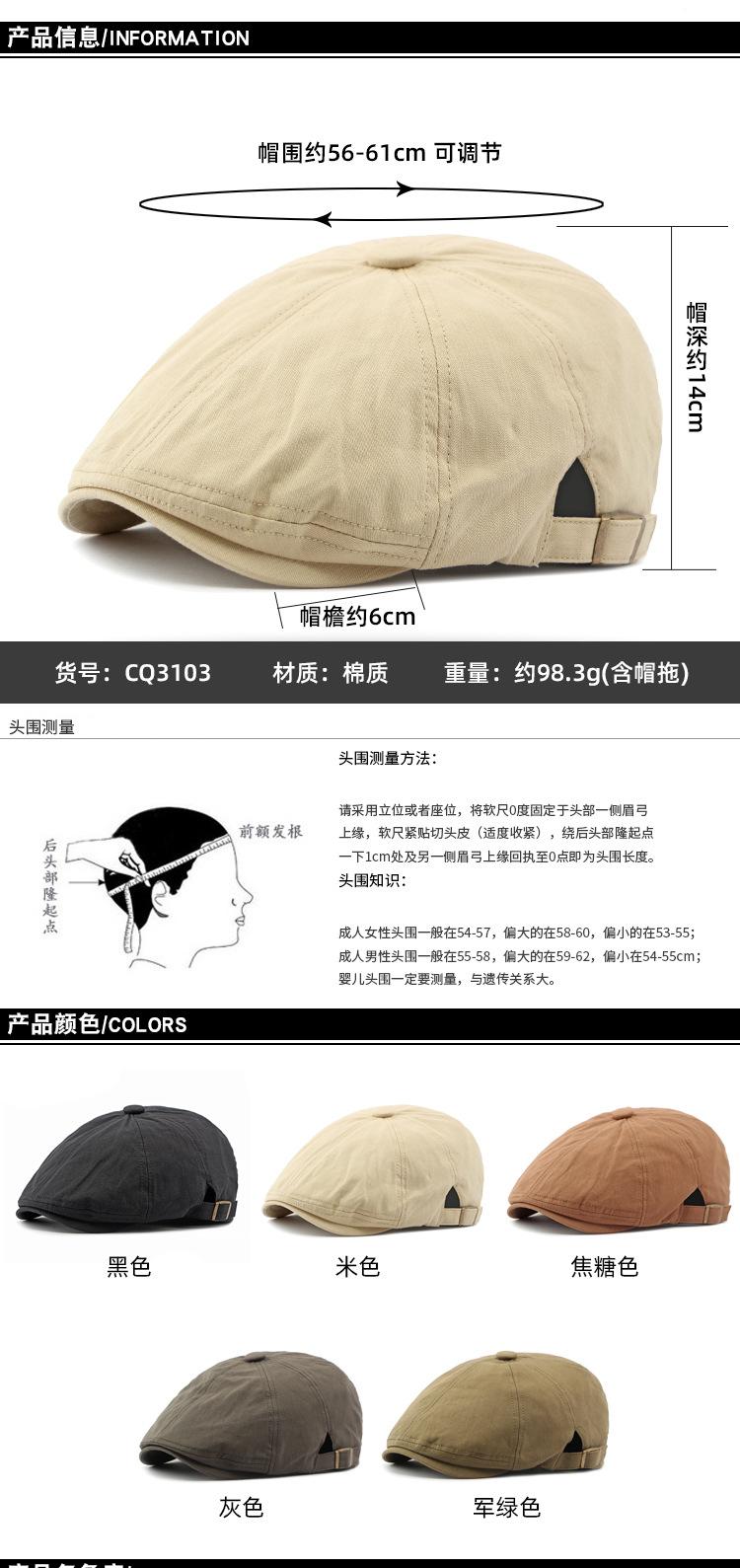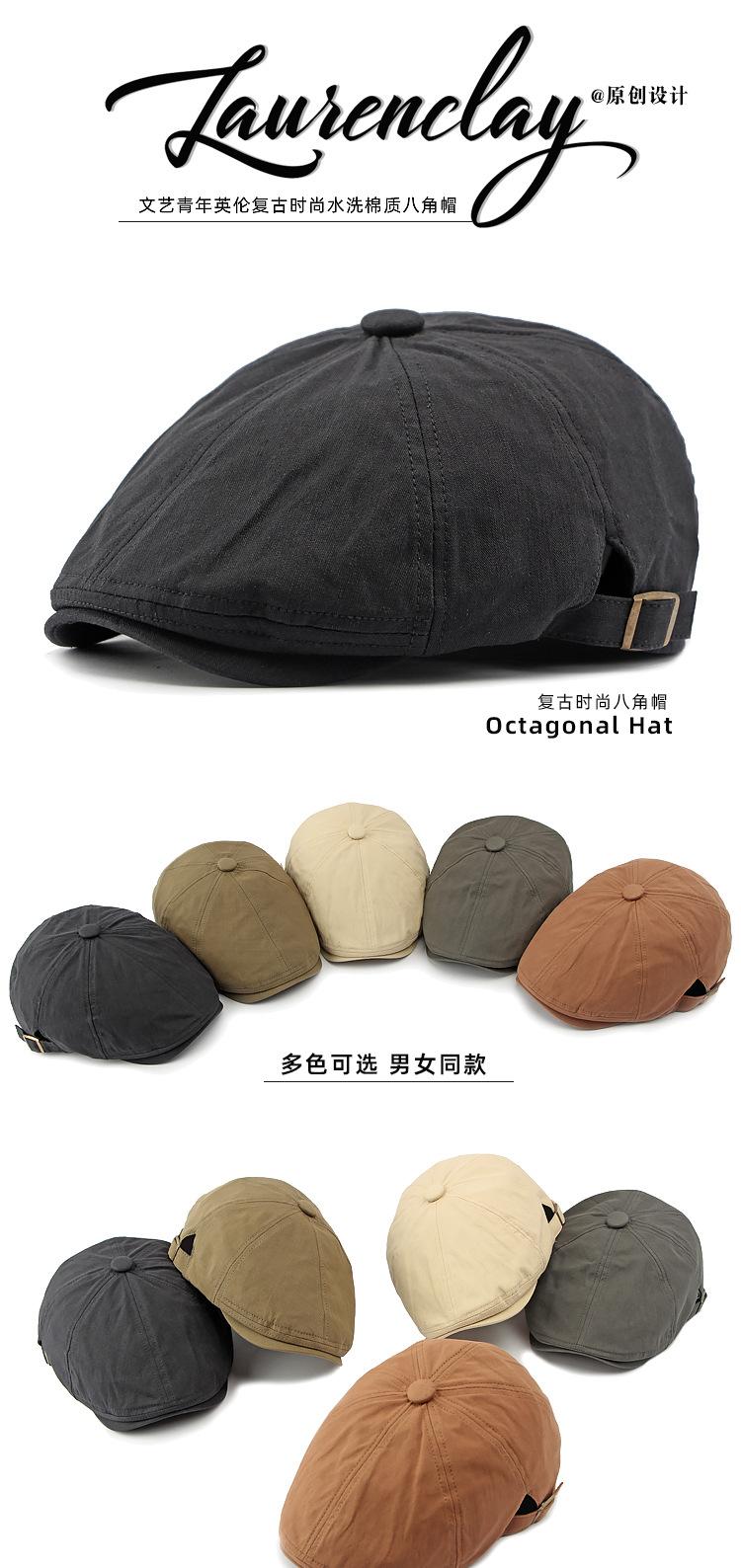 Sombrero Octogonal para Hombre y Mujer Estilo Coreano Simple Gorra Plana Ligera Retro Británico Artístico Casual Sombrero de Pintor Sombrero de Repartidor