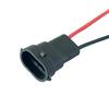 Cabezal de plástico, terminales de cobre estañado, cable de cobre calibre 18.
