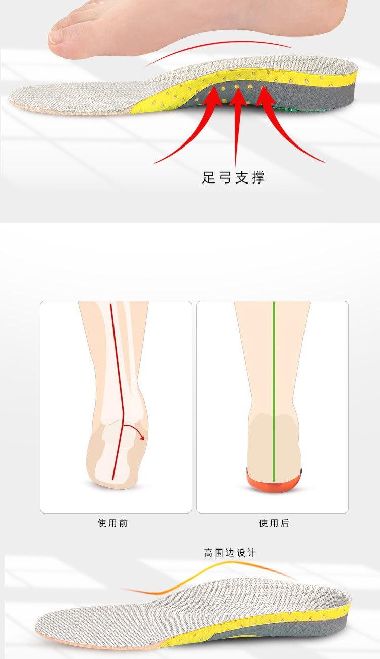Plantillas para pie plano con arco evertido hacia adentro, base plana de ocho caracteres, tipo XO, soporte para colapso de pierna, pies planos