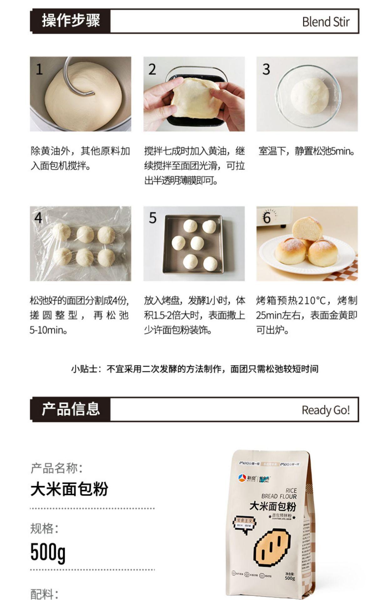 Polvo para pan de arroz horneado Xinliang, 500 g, paquete de pan de arroz japonés, polvo para tostar, harina con alto contenido de gluten para hornear en el hogar