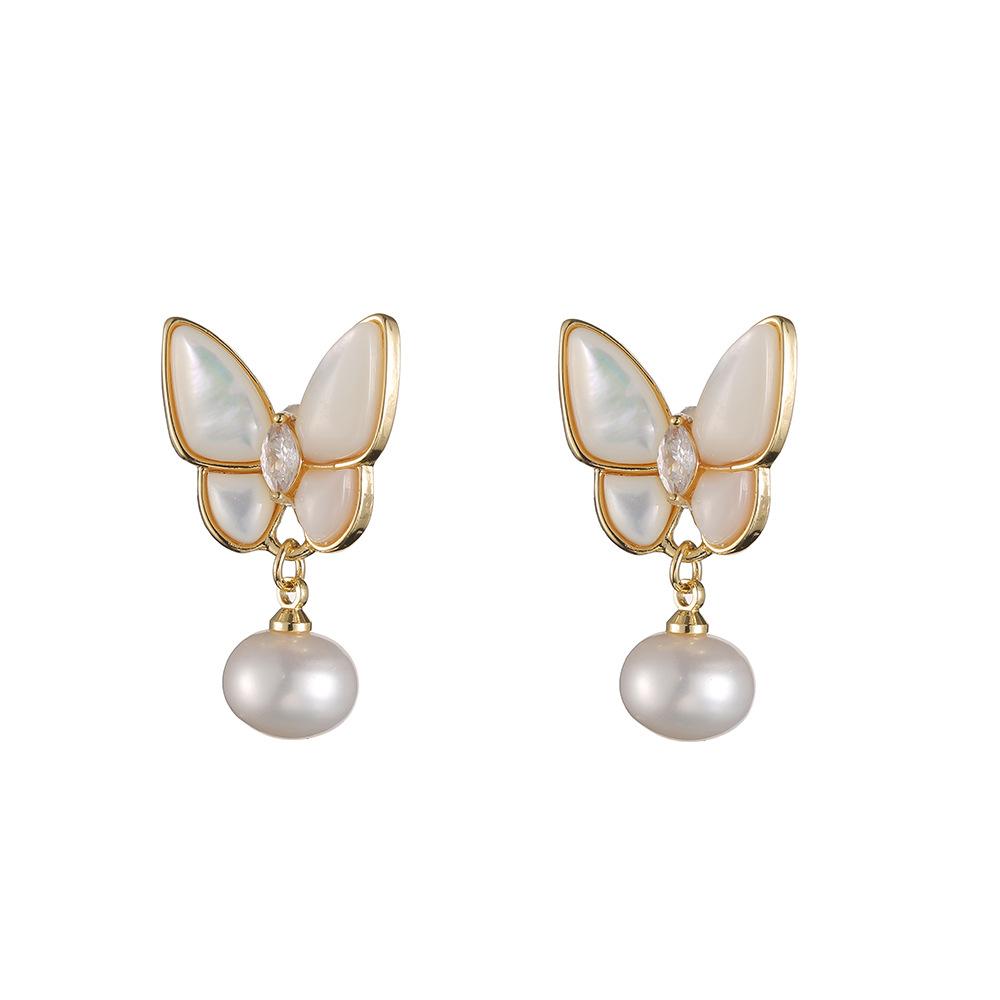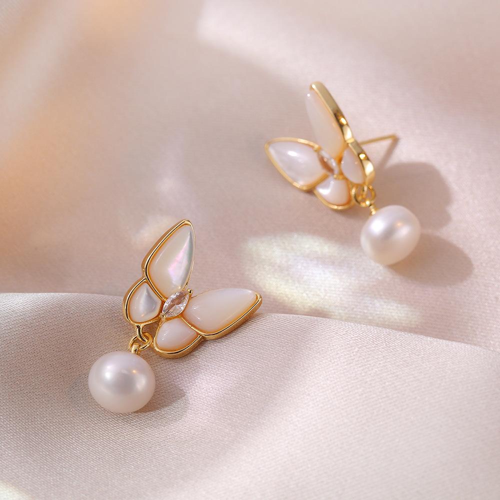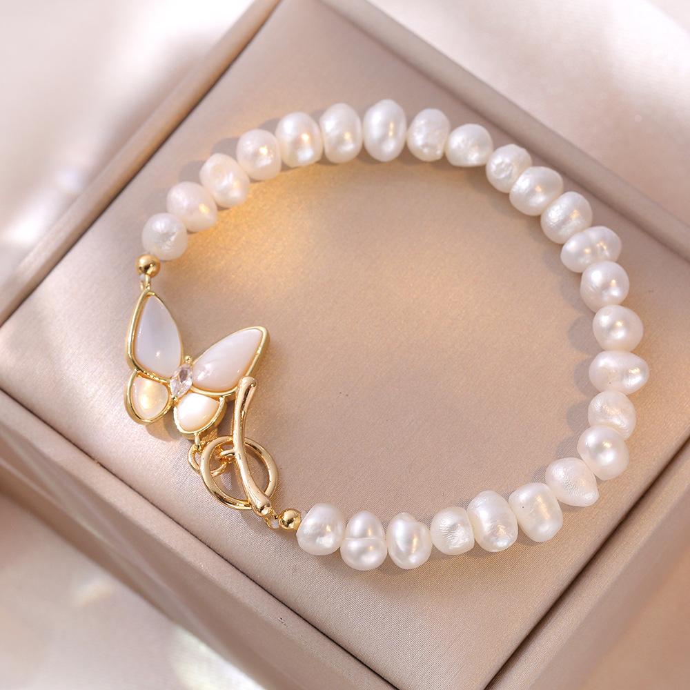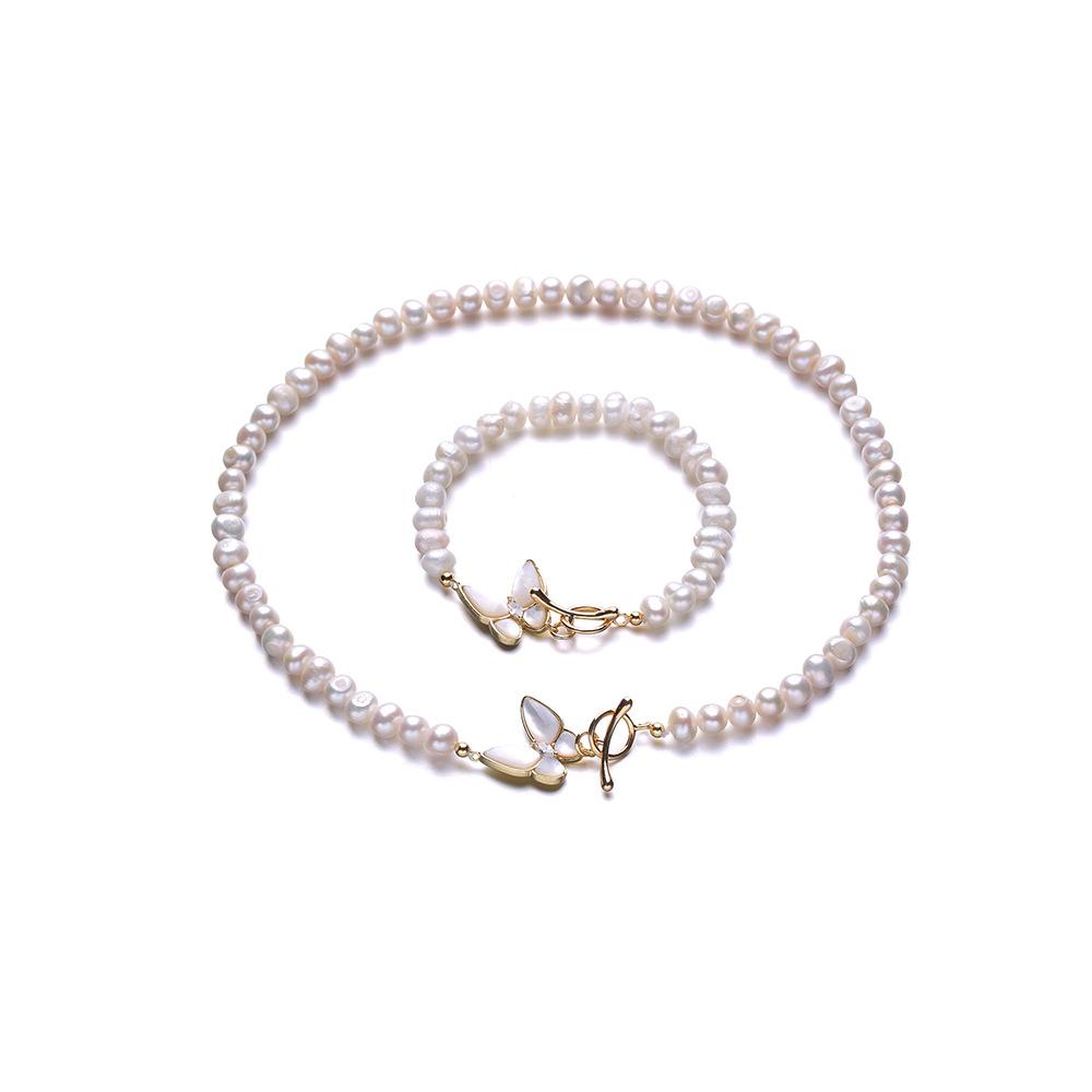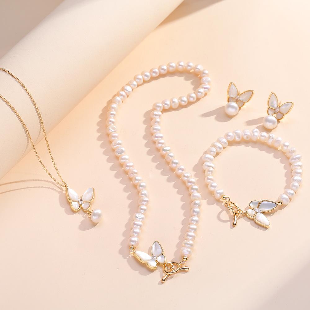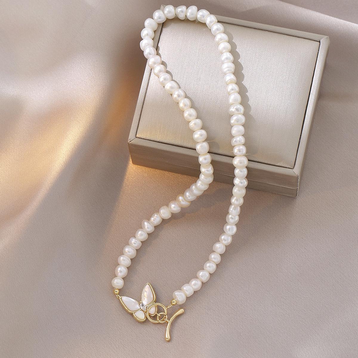 Collar femenino con diseño de nicho, concha de mariposa tridimensional, pulsera de perlas de agua dulce con microincrustaciones, collar con hebilla.