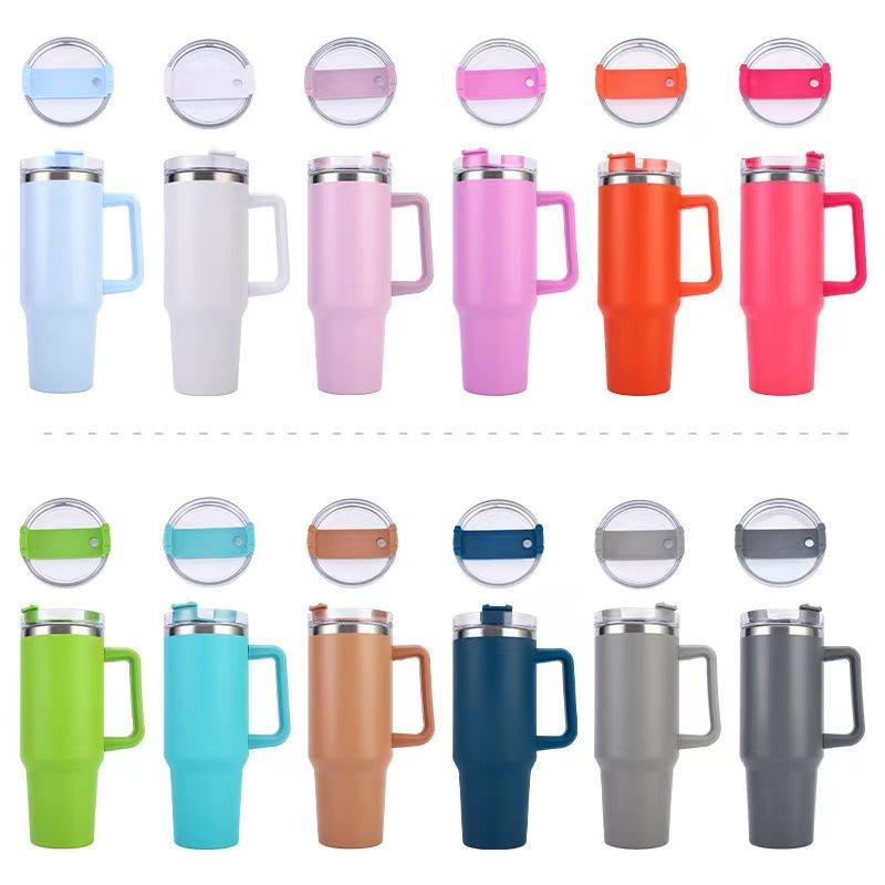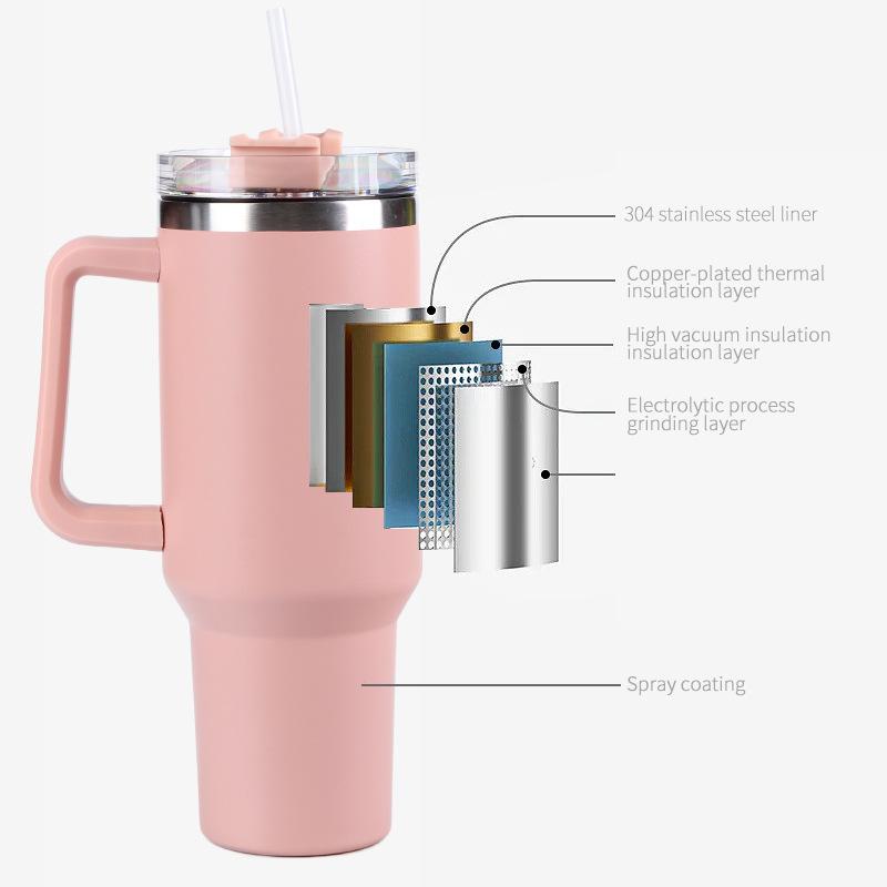 Termo de acero inoxidable 304 de gran capacidad para coche, taza de hielo de 40 oz, con mango frío y tubo de succión, con borde cruzado.