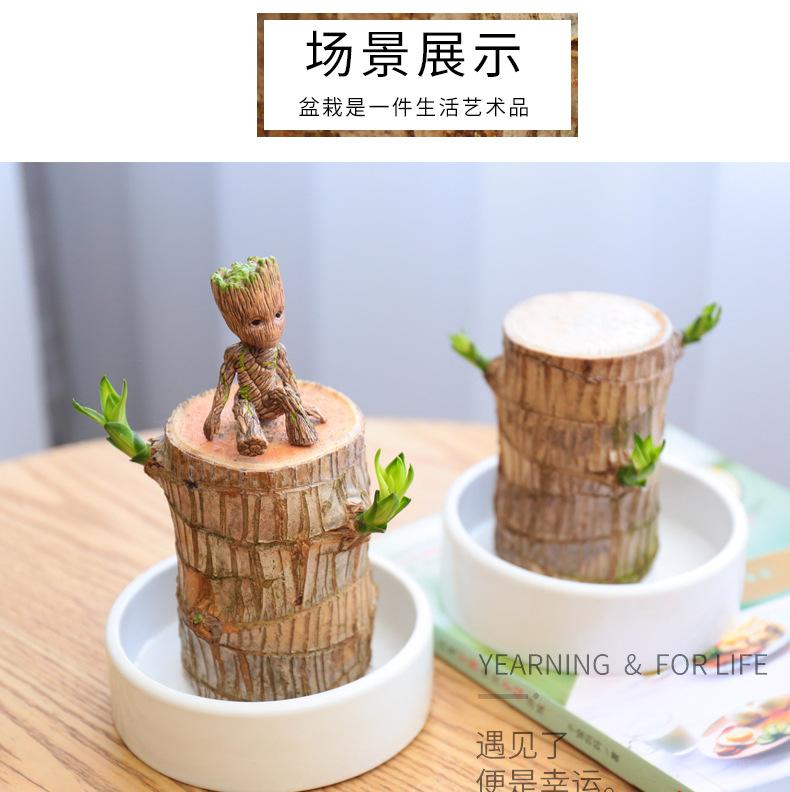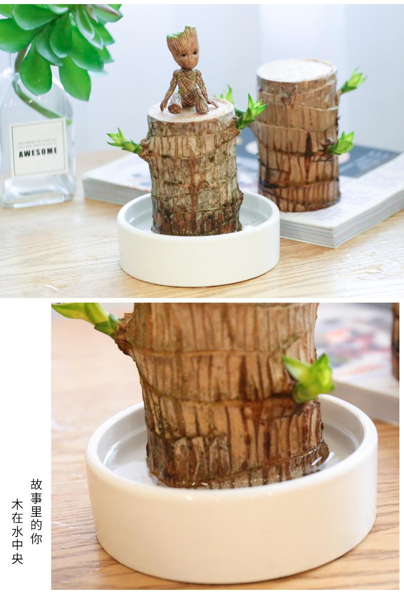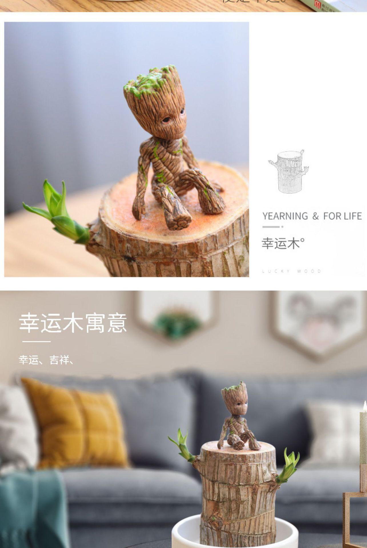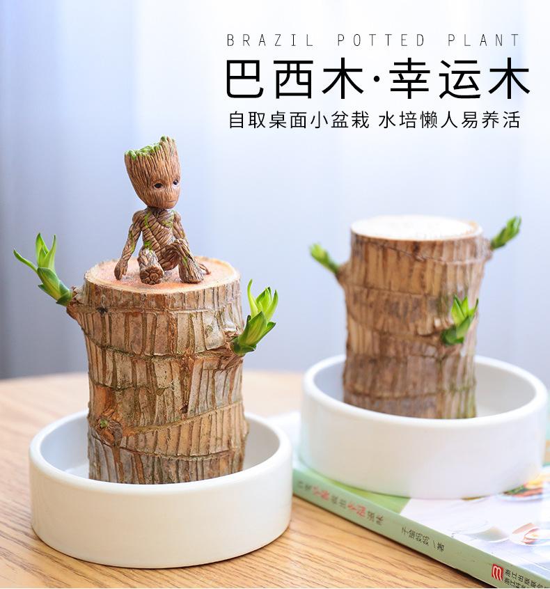 Madera Brasileña Criada en Agua Madera de la Suerte Hombre Árbol Groot Florece con Brotes Planta Verde Perezosa Escritorio de Oficina Planta Pequeña en Maceta