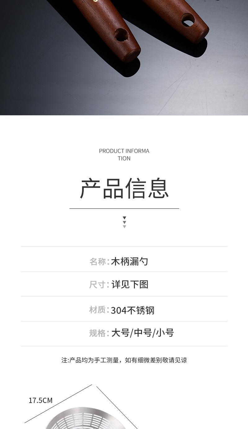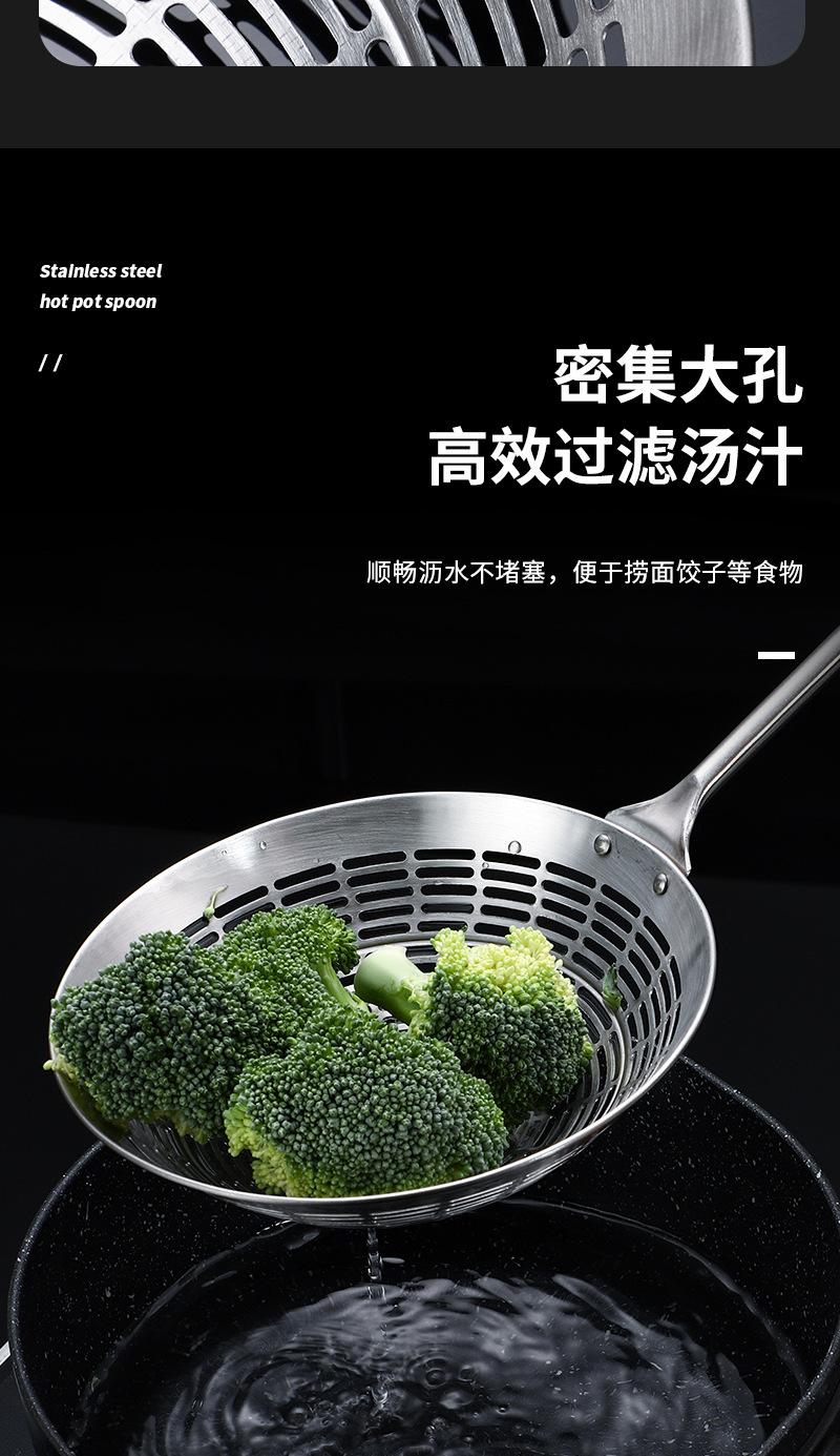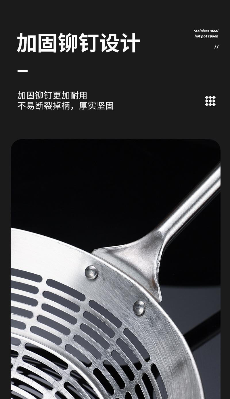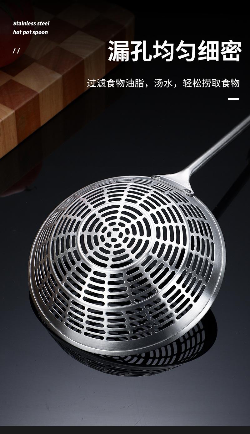 Cuchara de fideos fritos de acero inoxidable 304 para cocina doméstica, mango de madera engrosado, colador grande anti-escaldaduras, venta al por mayor