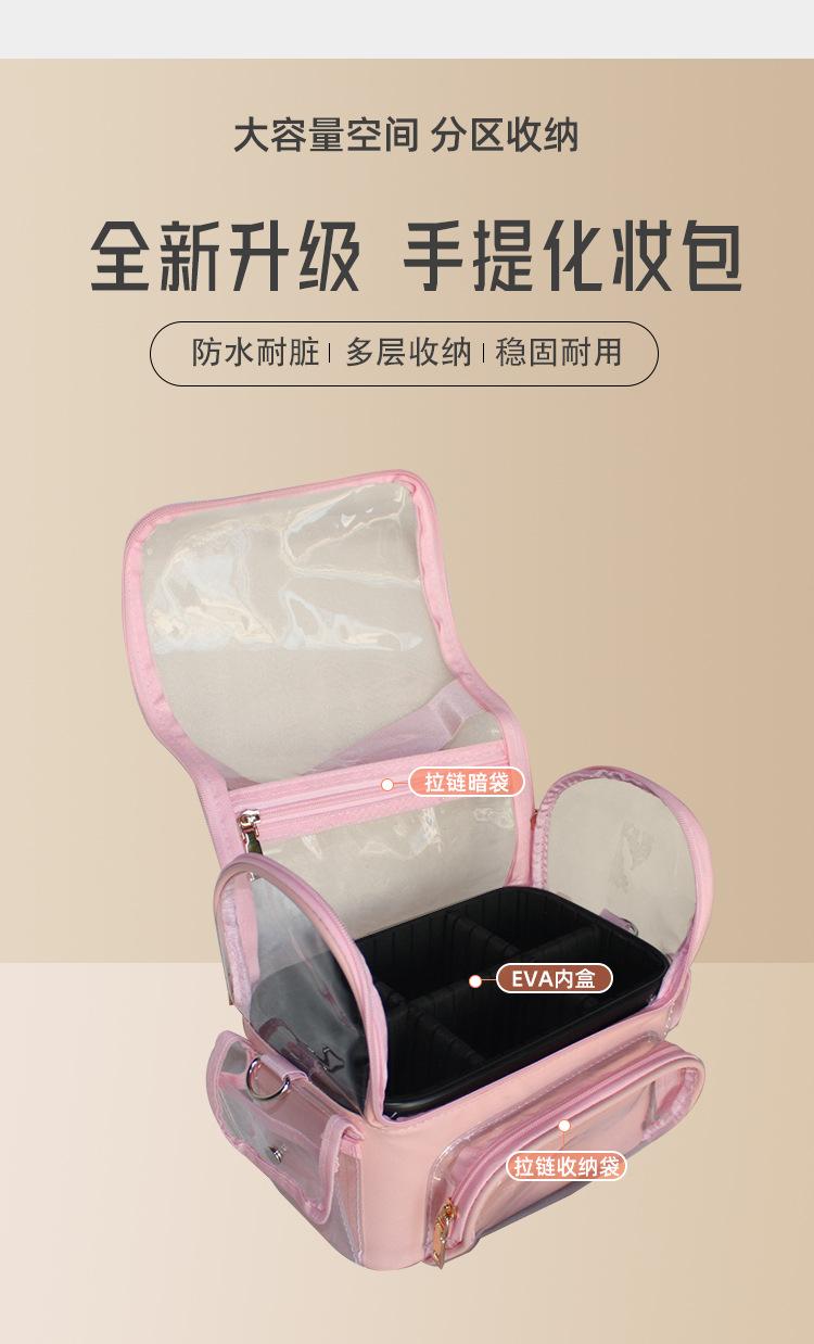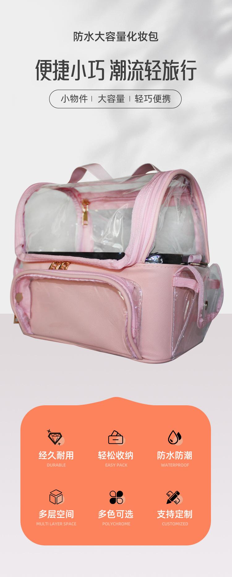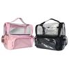 Bolsa Cosmética Portátil Transparente Rosa de Gran Capacidad para Maquillaje, Bolsa de Almacenamiento para Maquillaje de Diseñador con Correa para el Hombro, Bolsa Multifuncional con Divisiones