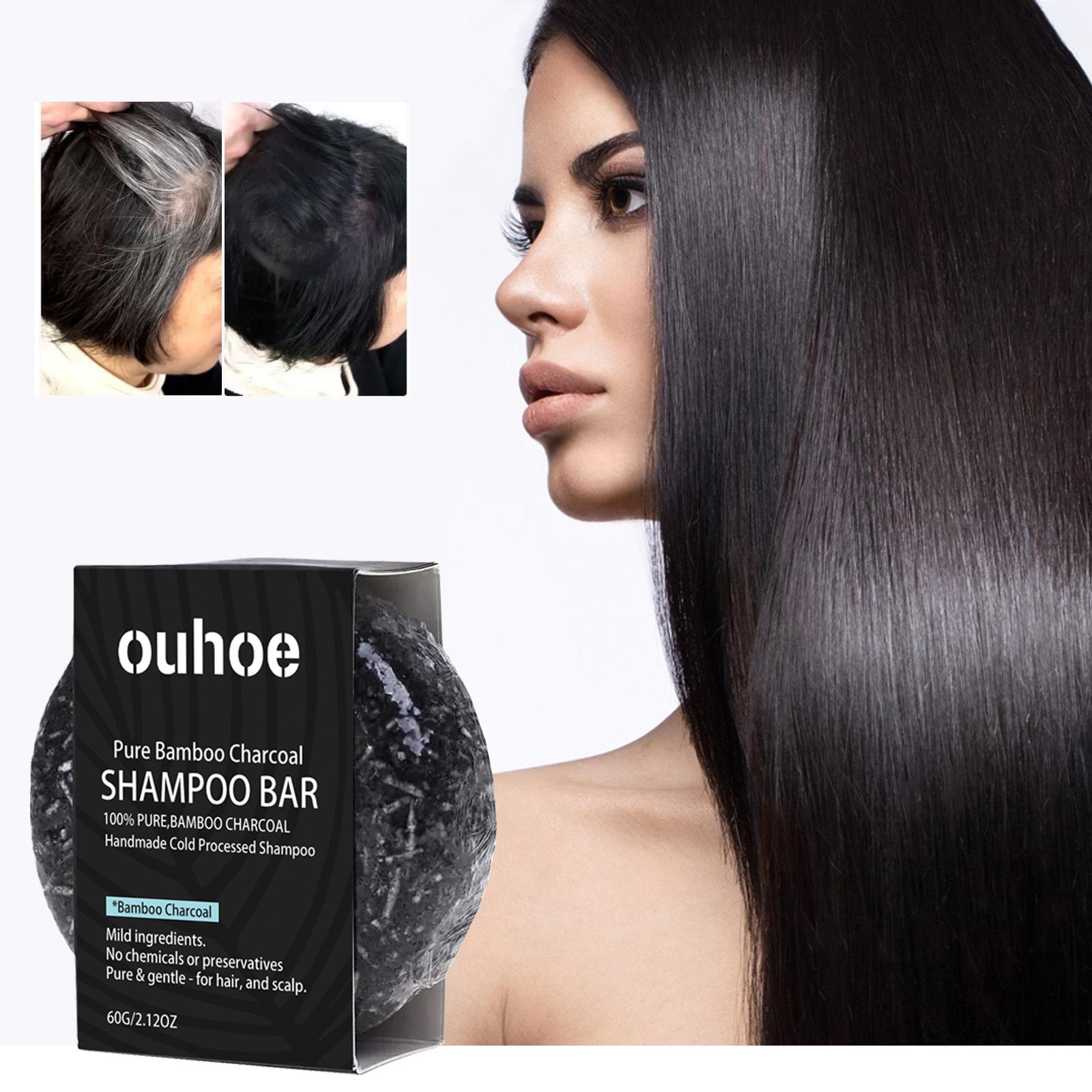 Ouhoe Champú Jabón de Carbón de Bambú Limpieza Profunda Cuero Cabelludo Fortalecimiento Firmeza Cabello Nutritivo Mantenimiento Mejora Champú Seco Jabón
