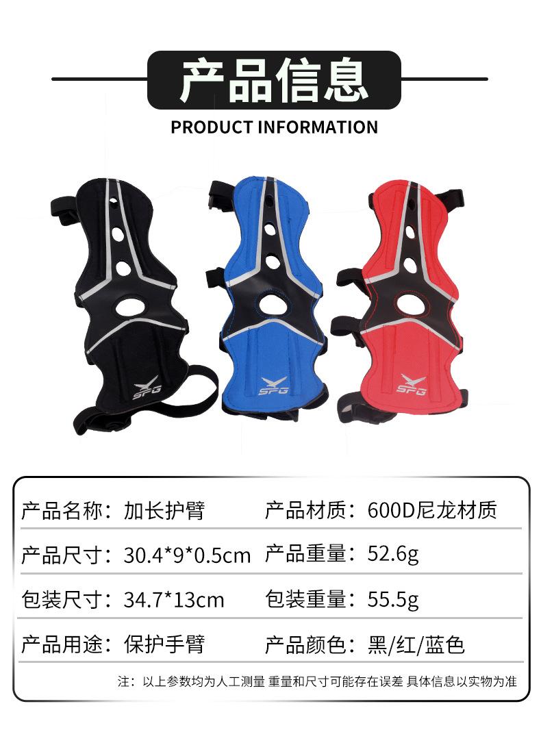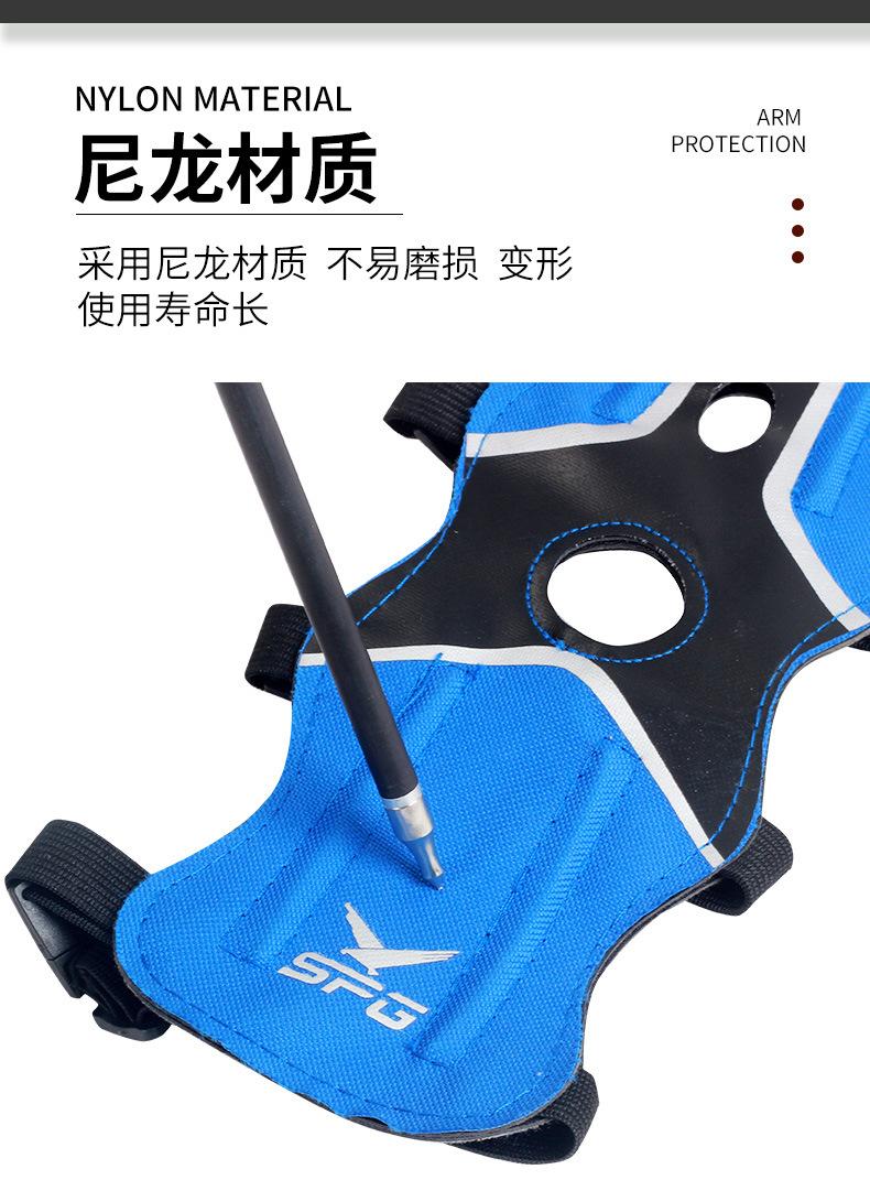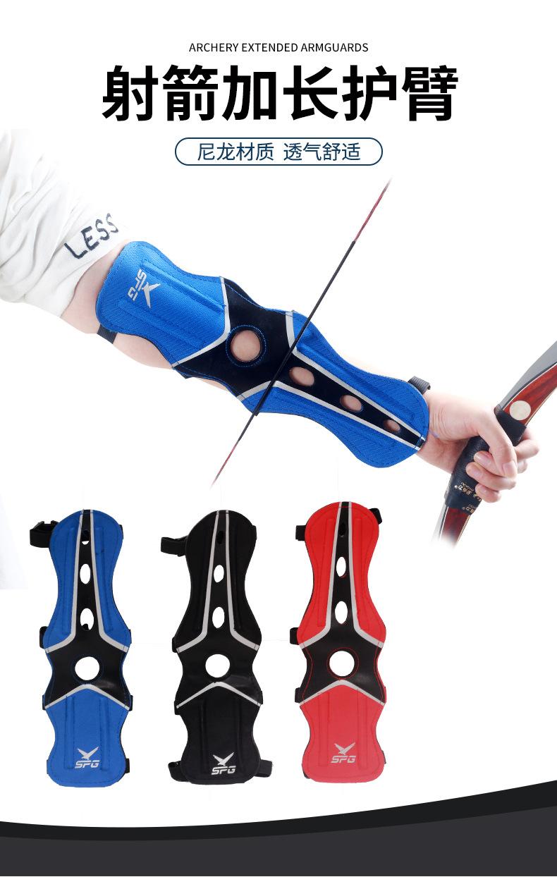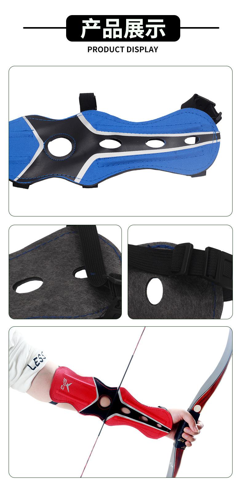 Protector de brazo extendido para tiro con arco, fabricante de material de nailon, transpirable, cómodo, elástico, ajustable, accesorios para tiro con arco al por mayor.