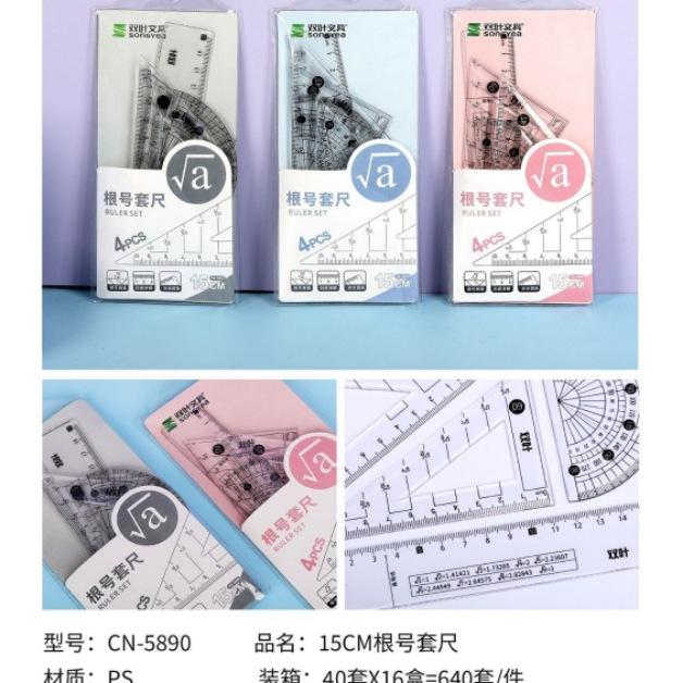 Lindo juego de reglas de dibujos animados, lindo estudiante, regla triangular multifunción, transportador, juego de cuatro piezas, juego de reglas suaves, venta al por mayor