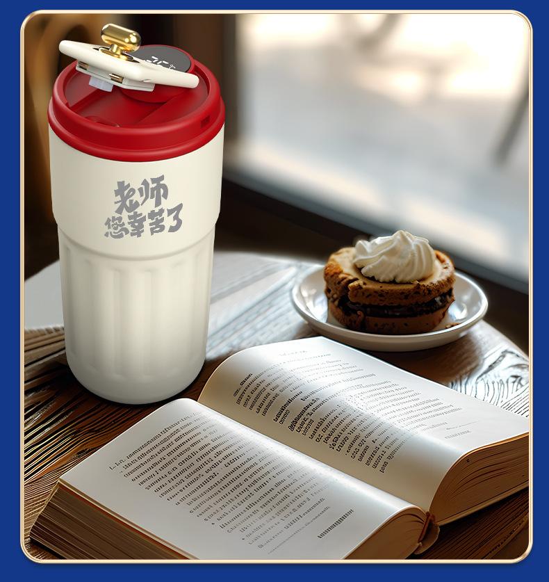 Blue 2-piece set of Shien unforgettable-coffee cup charging treasure, Red 2-piece set of teachers lucky bitter...