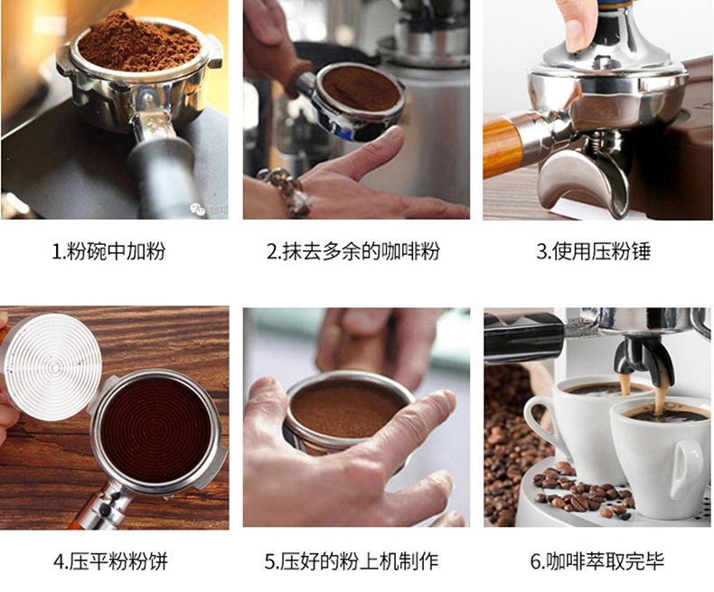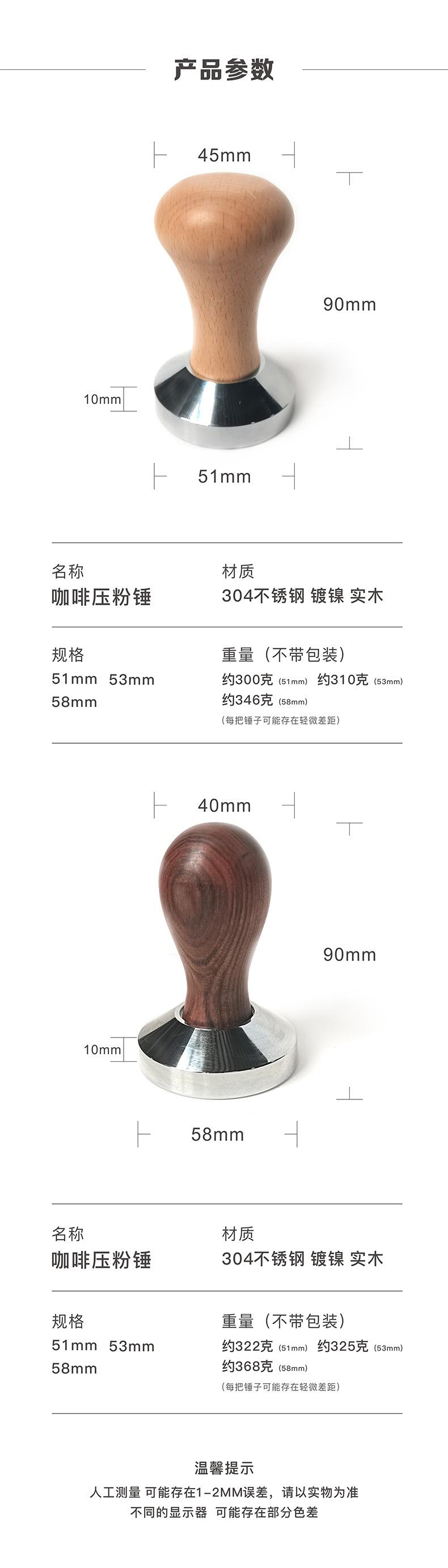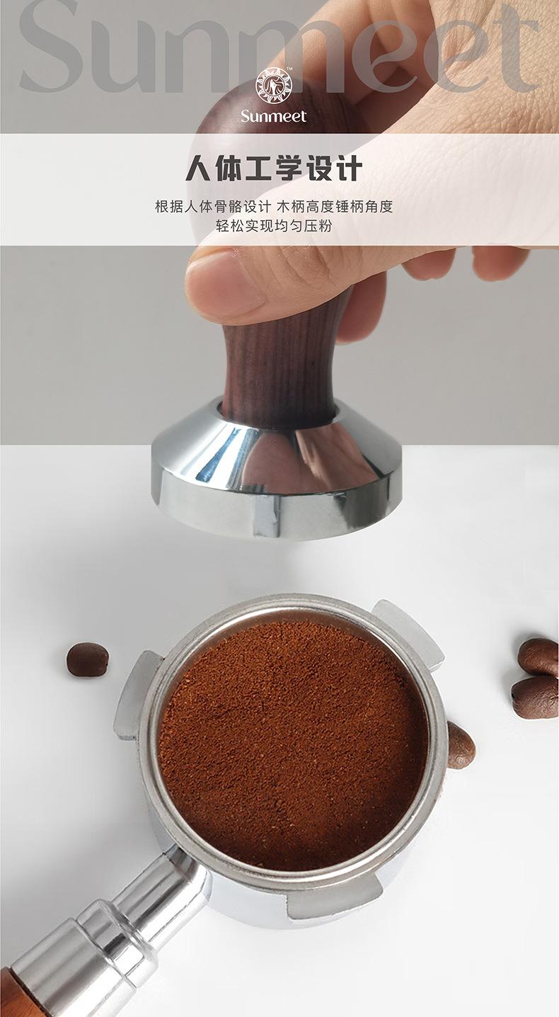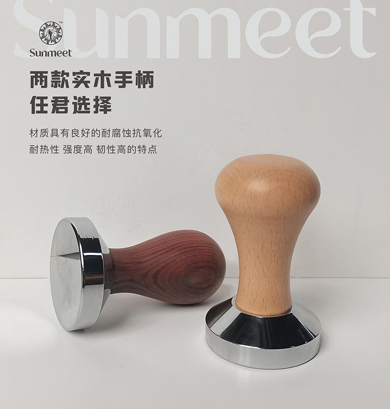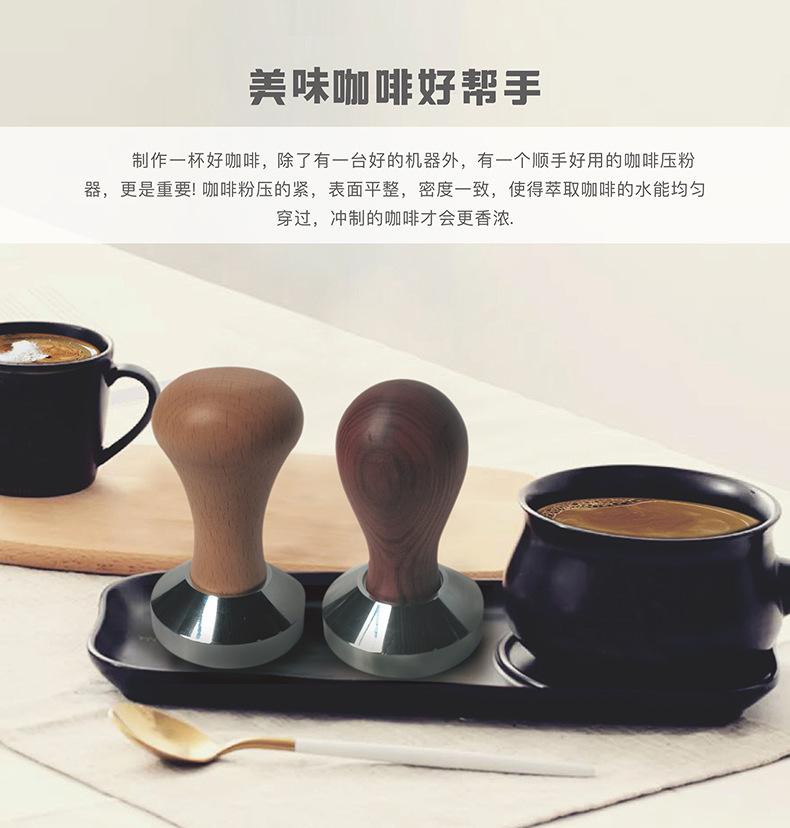 Prensa de café en polvo de acero inoxidable 51/53/58, martillo de polvo de tela plana, mango de madera, máquina de café italiana, martillo de polvo