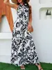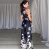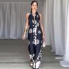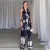 Pantalones casuales con cuello en V y cordones en la cintura, estampados, de Amazon, para mujer, de verano 2024, de moda transfronteriza europea y americana