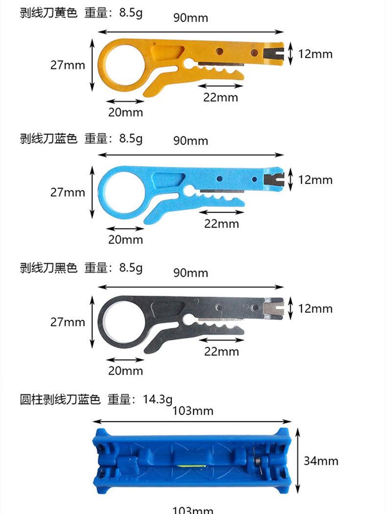 Wire stripper Black, Wire stripper yellow, Wire stripper Blue, Cylindrical wire stripper Black, Cylindrical wi...