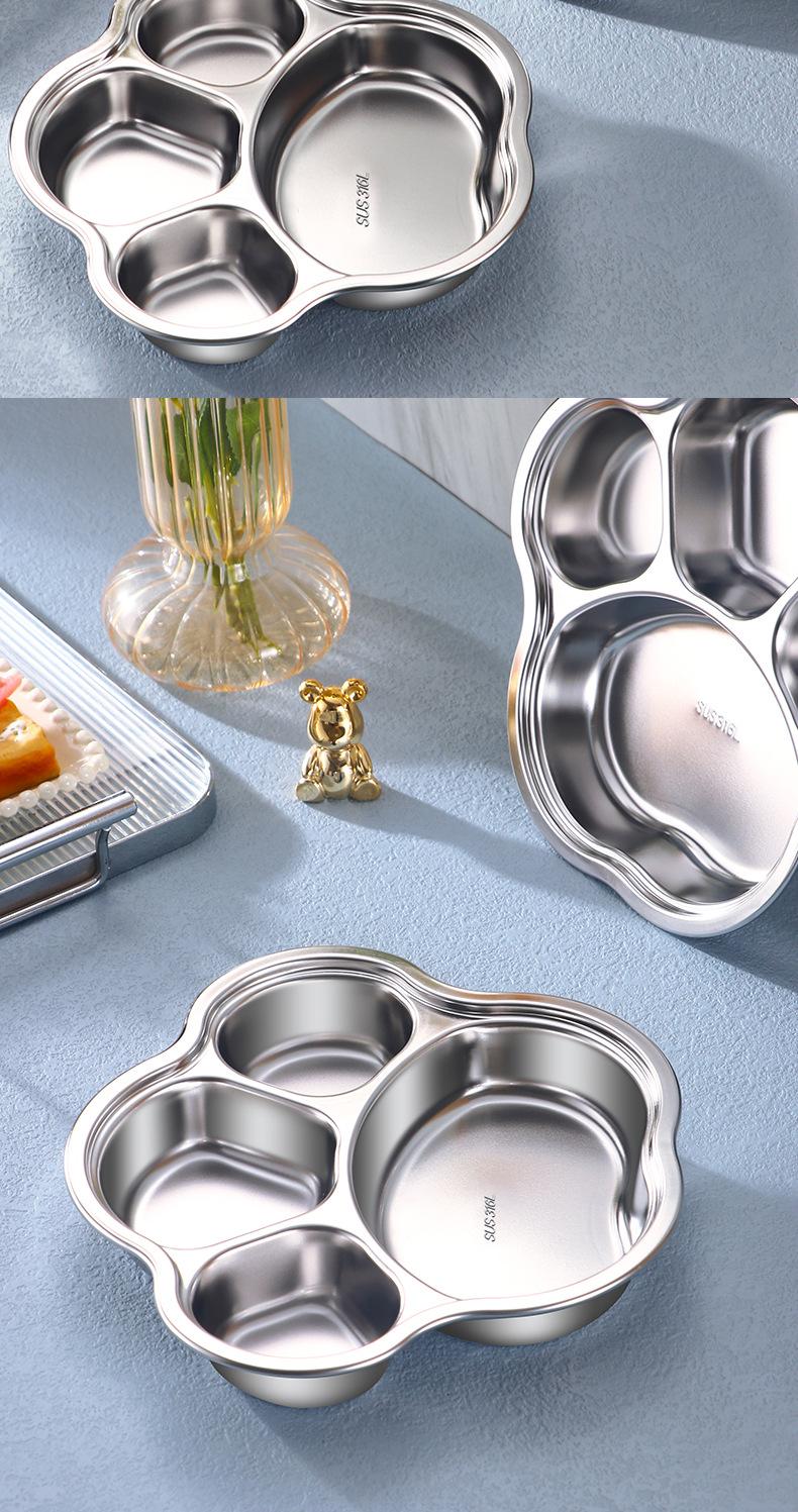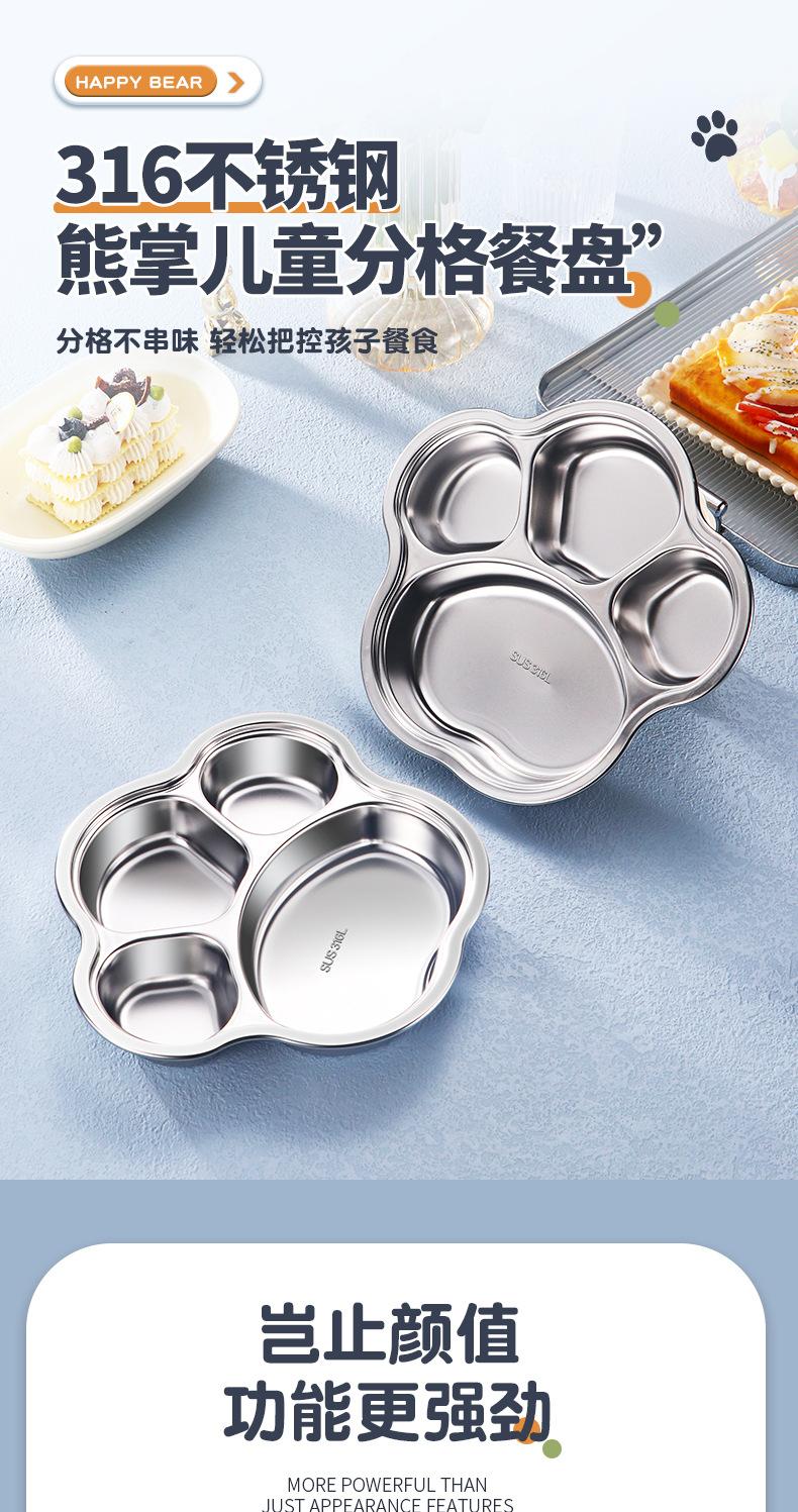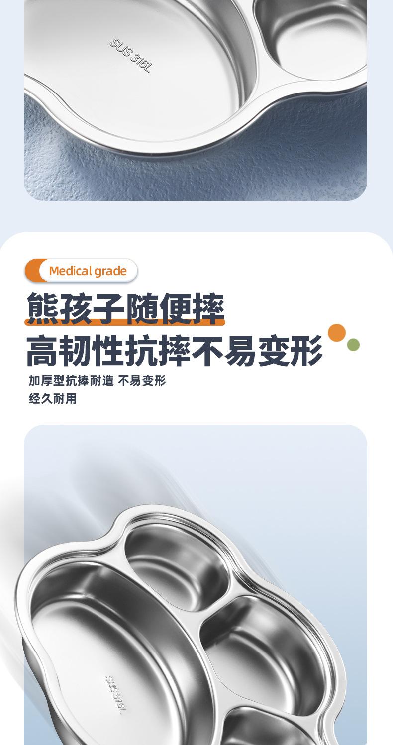 Lindo Plato Dividido para Cena Infantil de Acero Inoxidable 316 de Grado Alimenticio de Cute Bear's Pit Plato Dividido Jardín de Infancia Hogar Tazón para Comer para Bebé
