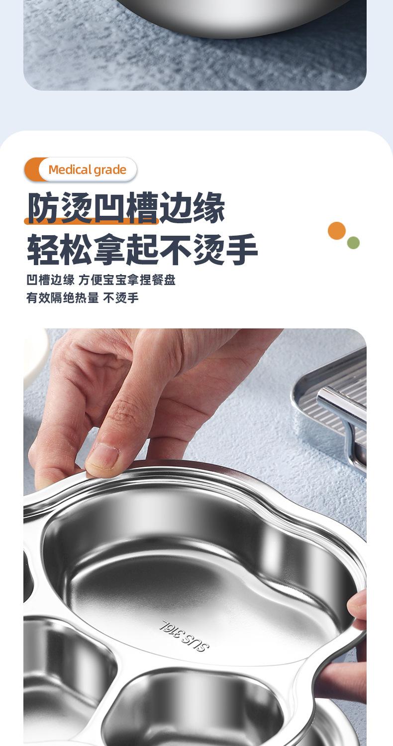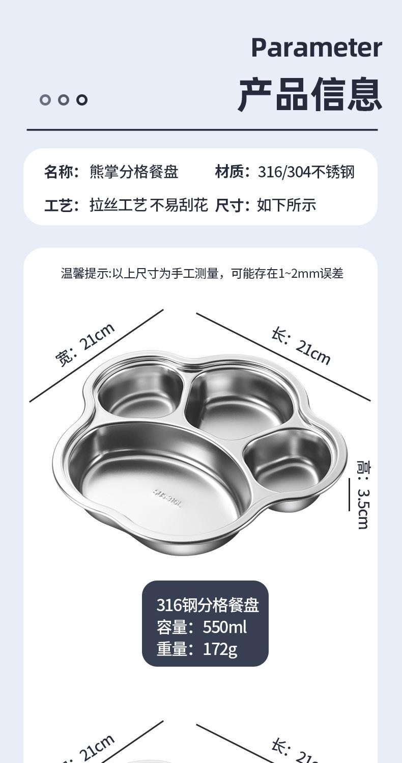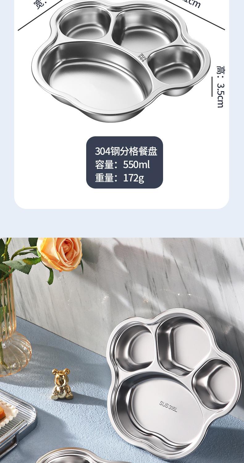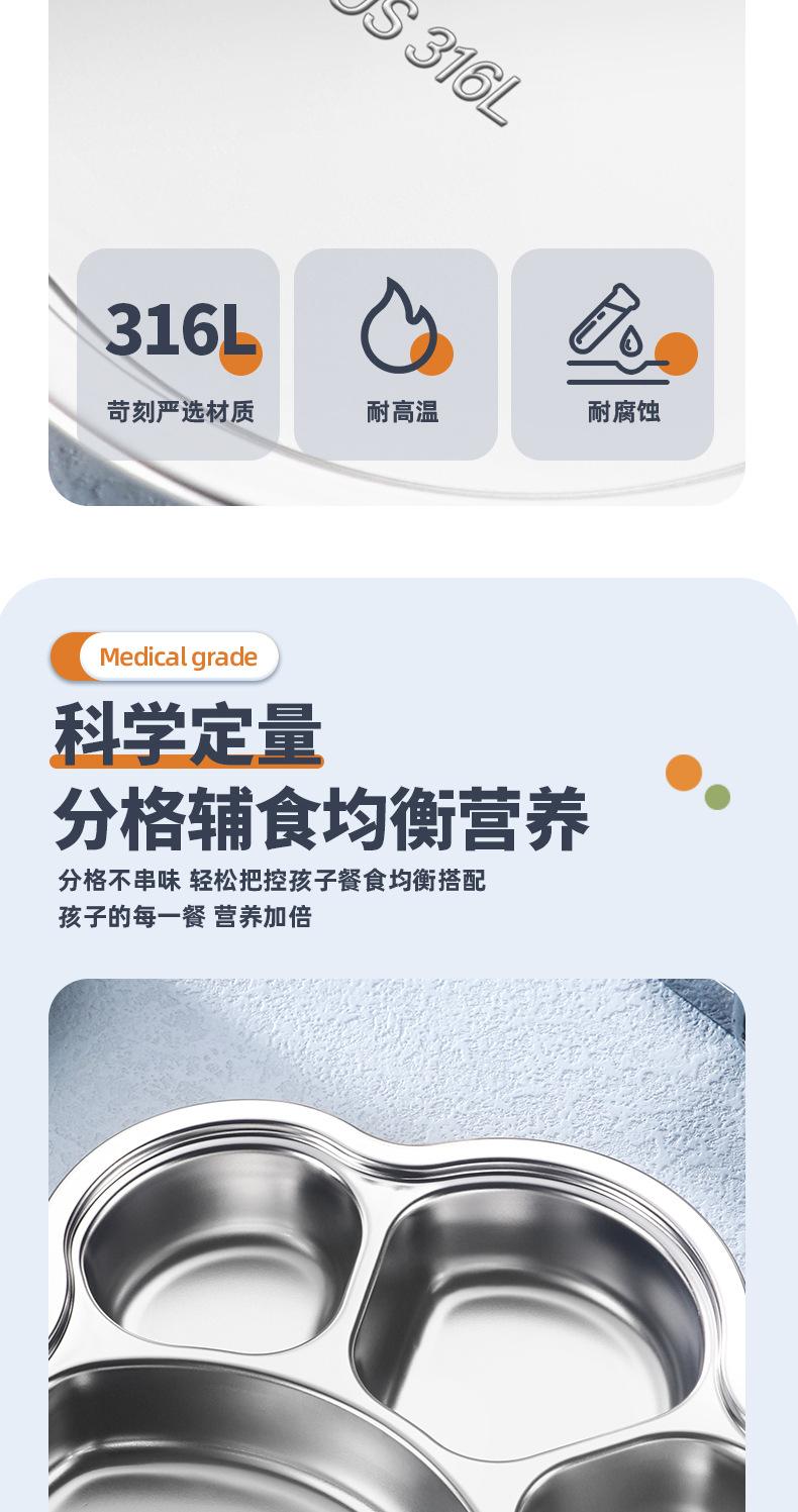 Lindo Plato Dividido para Cena Infantil de Acero Inoxidable 316 de Grado Alimenticio de Cute Bear's Pit Plato Dividido Jardín de Infancia Hogar Tazón para Comer para Bebé