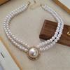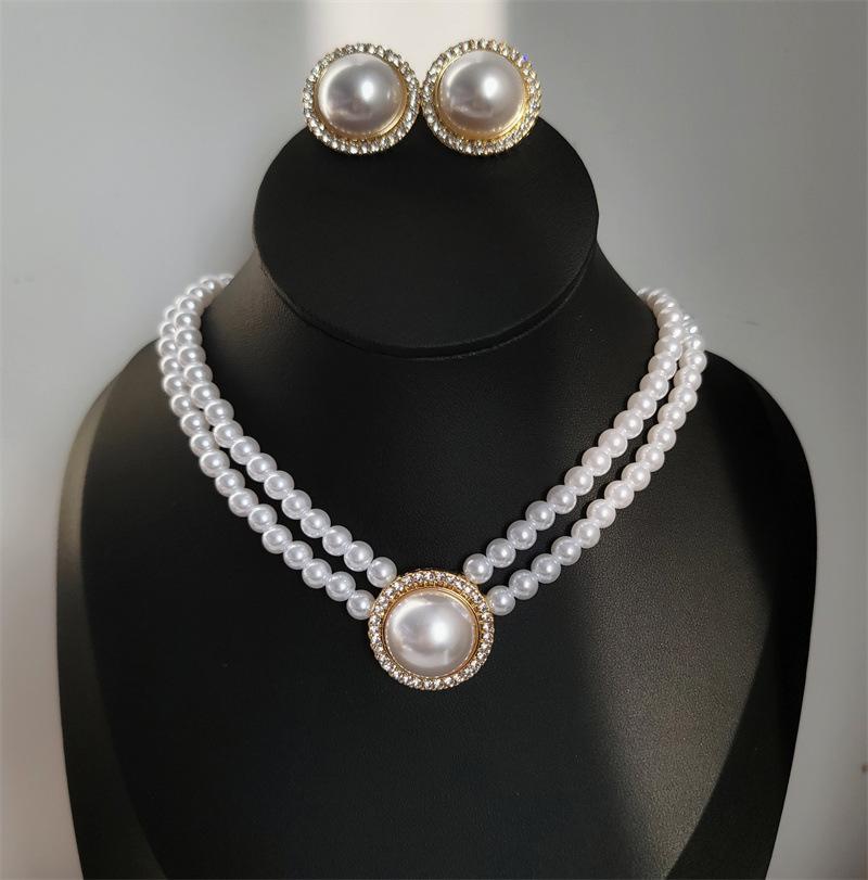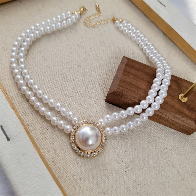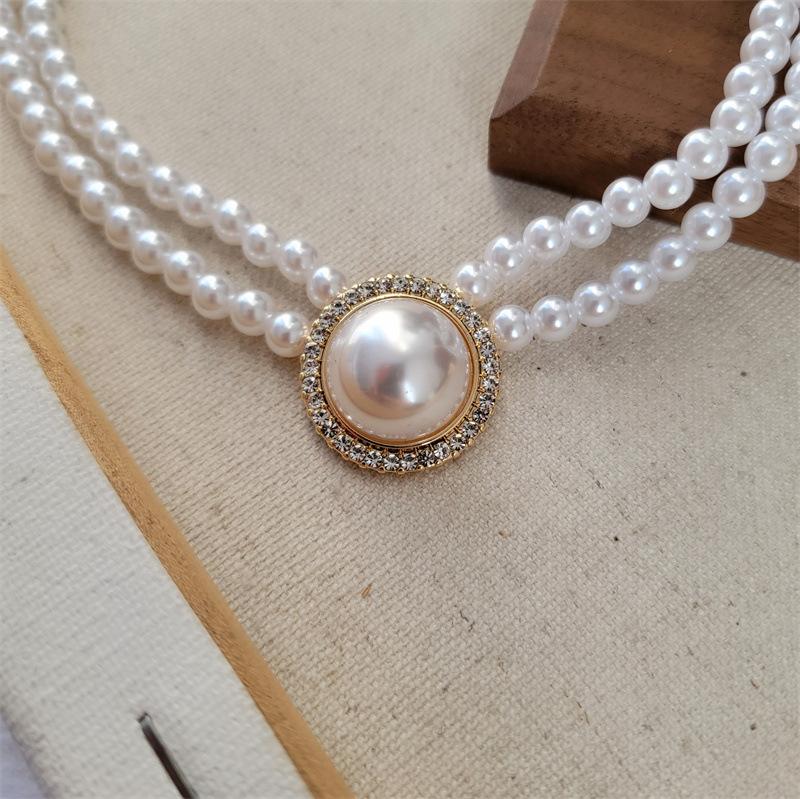 Collar Europeo y Americano Retro Simple Temperamento Doble Capa Perla de Imitación Grande Diamante Cadena Clavícula Versátil para Mujer