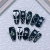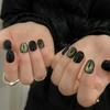 Taiwu Usando Armadura Manicura Hecha a Mano Acabada Parche de Uña Postiza Negro Oscuro Ojo de Gato Dulce Cool Spice Arte de Uñas