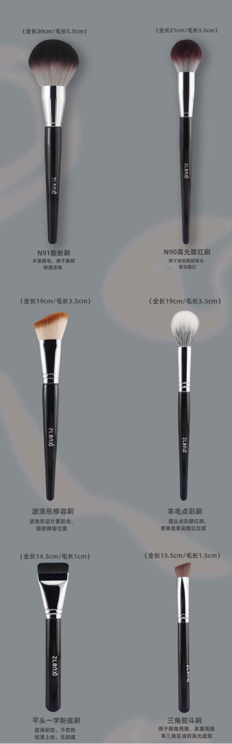 91 large powder brush with lid, No. 90 blush highlight brush, Slope blush stipple brush (wool), S108 round hea...