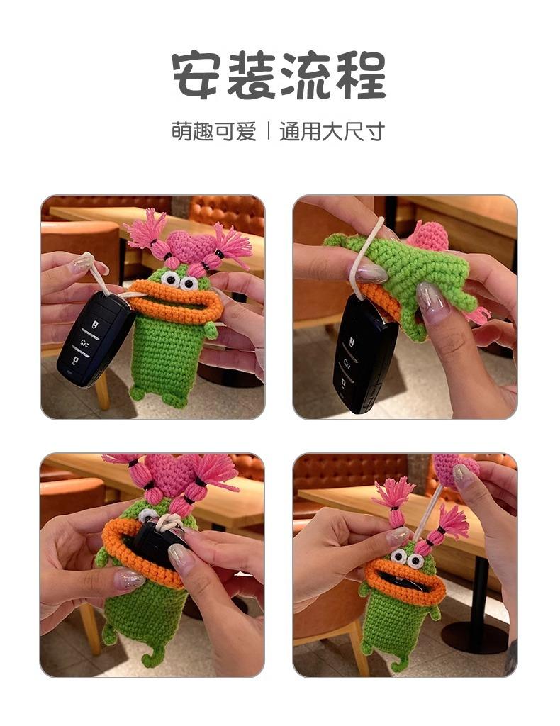 Hand knitted [pink twist braid] universal 99% car key full protection, Hand knitted [christmas green twist bra...