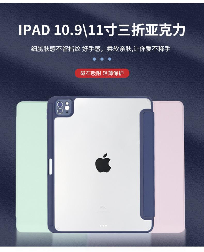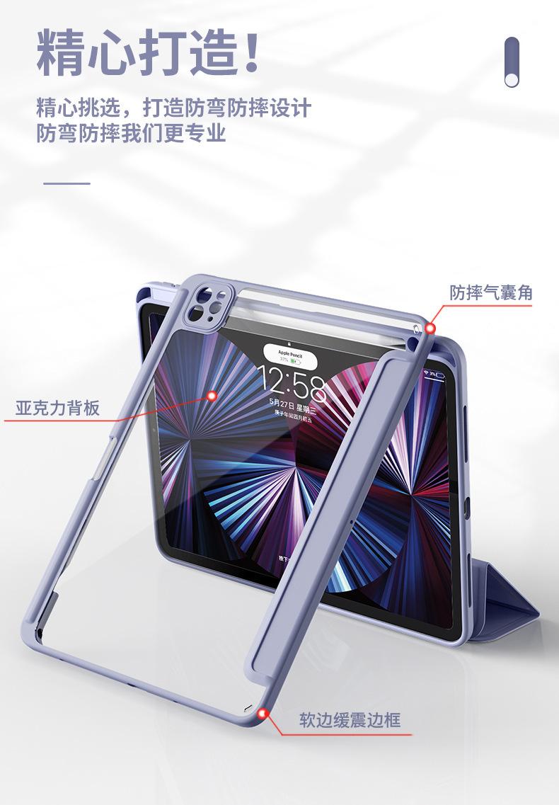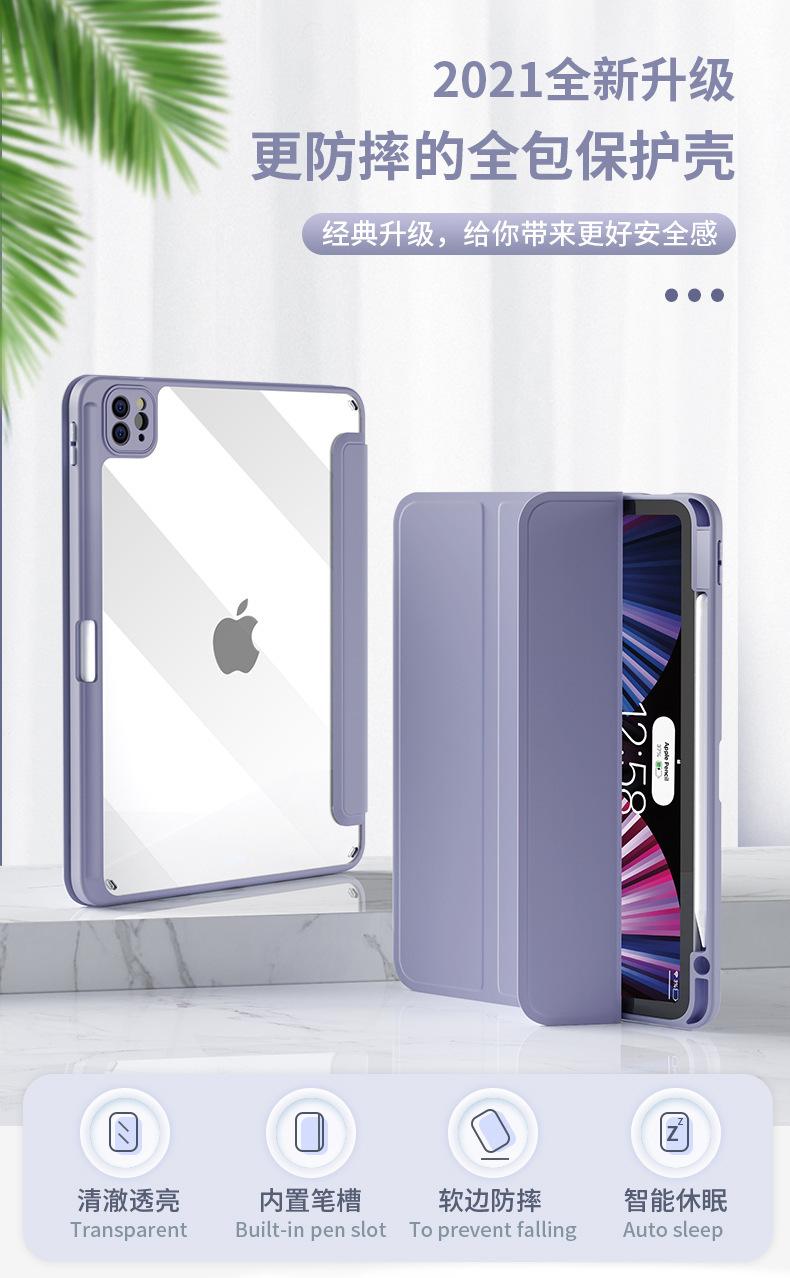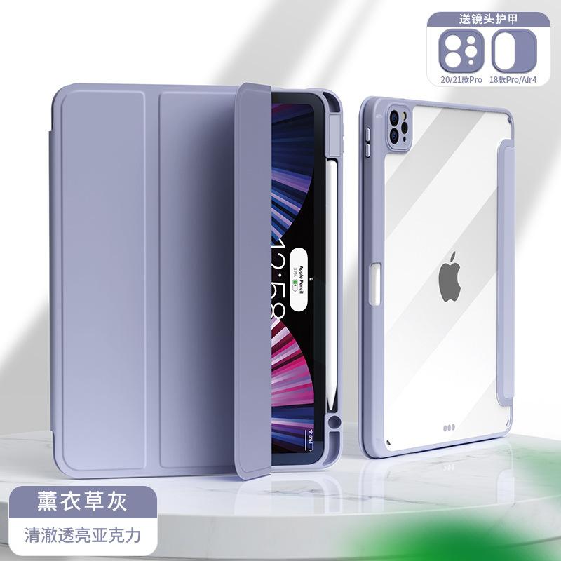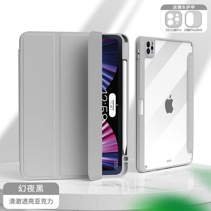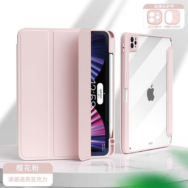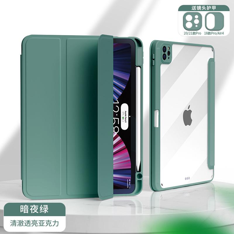 Funda protectora adecuada para iPad air4/5 con ranura para bolígrafo, funda de acrílico transparente todo incluido de 10,2 pulgadas, funda de cuero plegable de tres pliegues