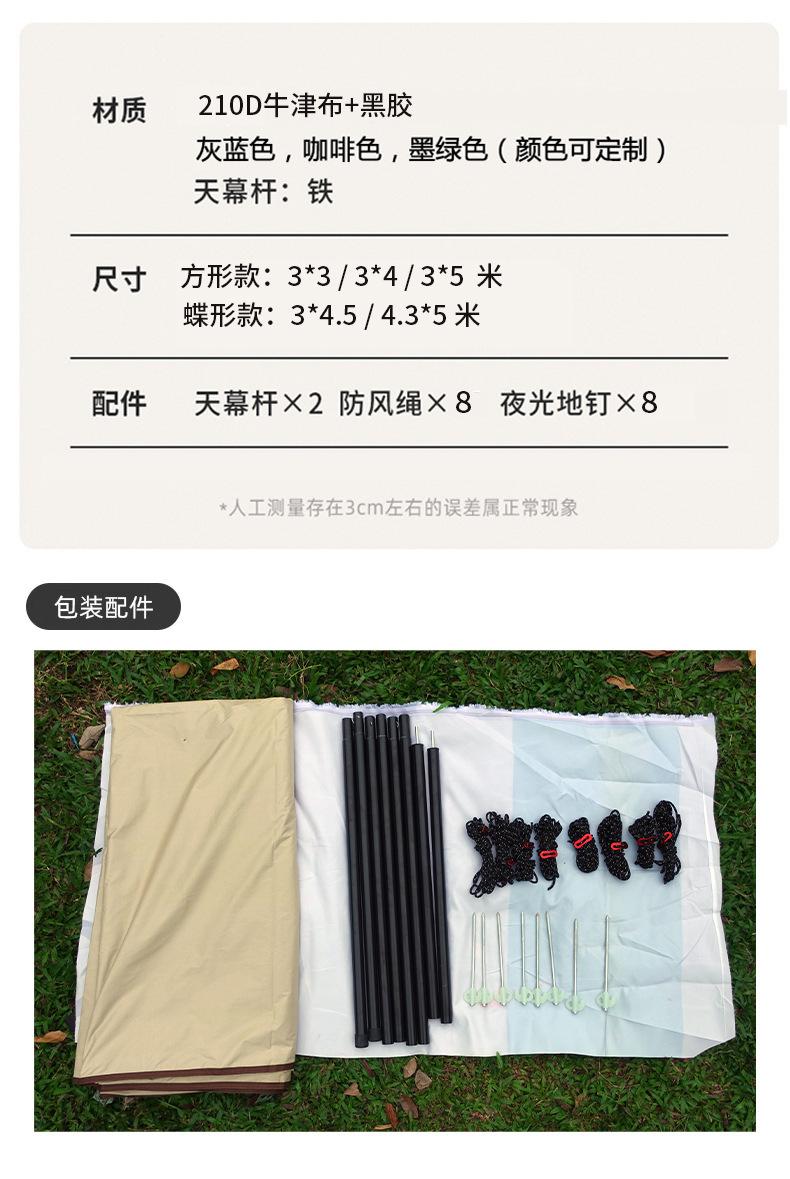 Toldo de plástico negro para acampar al aire libre, a prueba de viento, protector solar, toldo hexagonal, toldo para picnic, toldo cuadrado tipo mariposa.