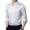 Camisa de Manga Larga de Seda de Morera Estampada para Hombre en Primavera y Otoño, Camisa de Seda Casual de Color Sólido, Top de Caballero de Negocios para Hombre