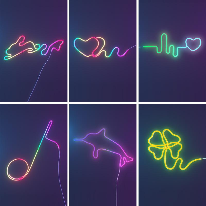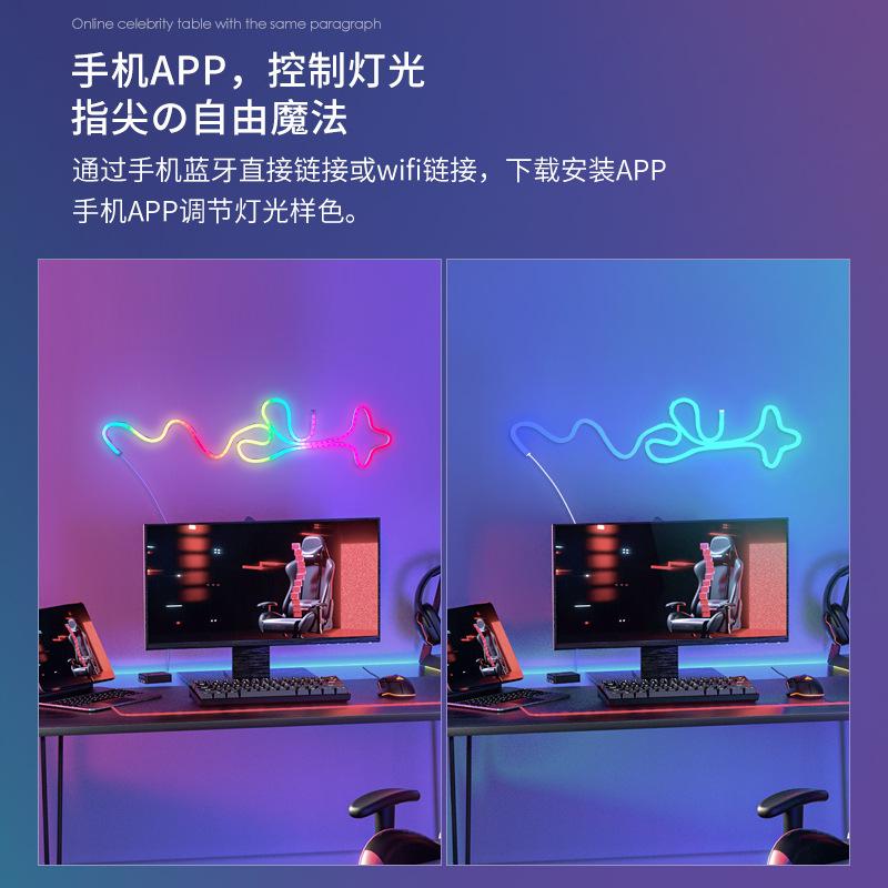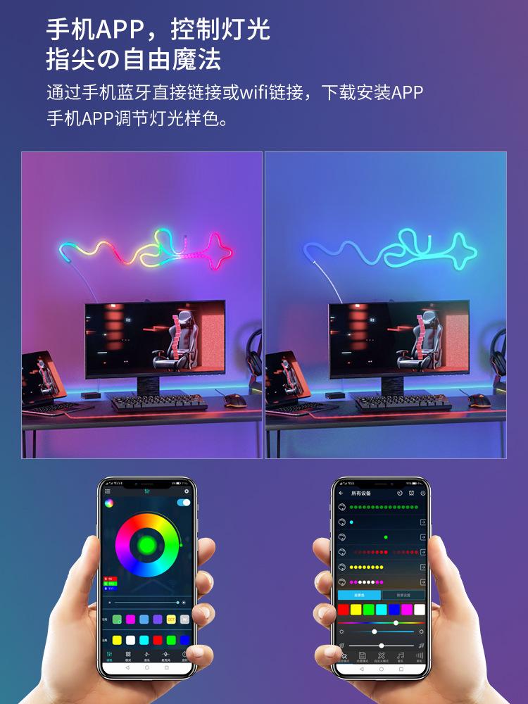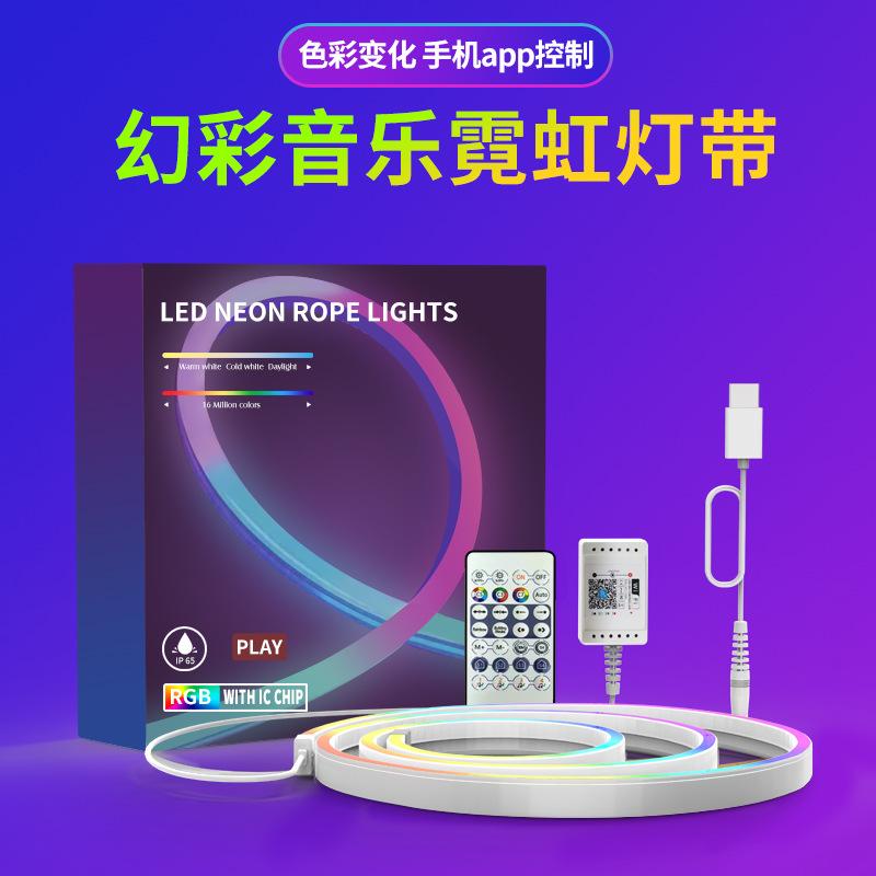 Juego de Tira de Luz de Neón LED para Exterior Impermeable Wifi Bluetooth Colorida Corriente Activada por Sonido Tira de Luz LED Regulable