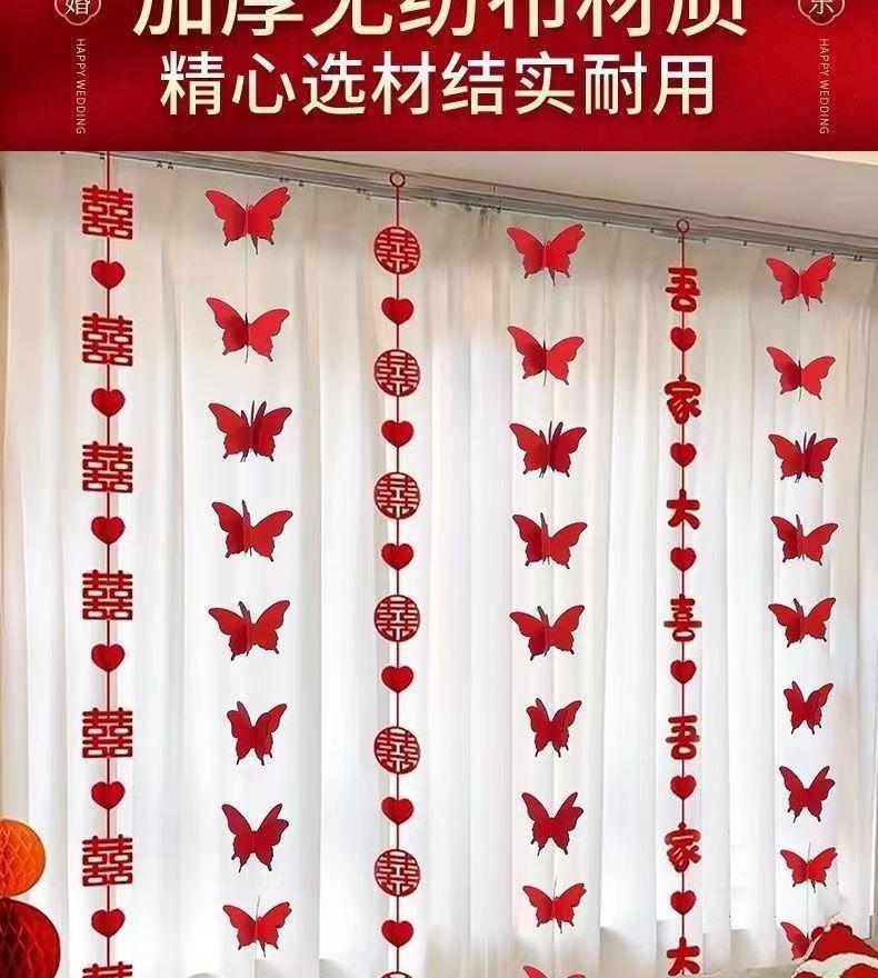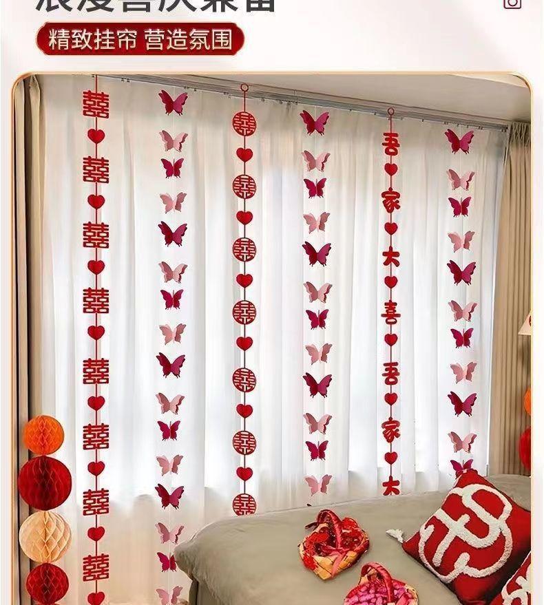 Decoración de Habitación de Boda Tira de Boda Traje de Personaje Feliz Casa Nueva Dormitorio de Hombre Cortina Sala de Estar de Mujer Mariposa Flor