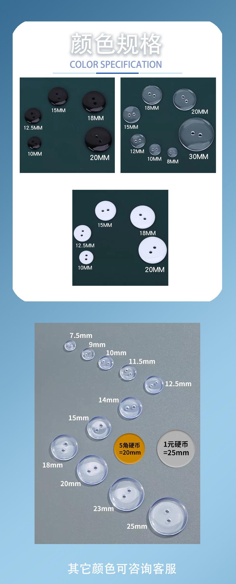 Botones de resina al por mayor transparentes blancos negros dos ojos cuatro ojos botones para camisa ropa de niño textiles para el hogar botones de resina
