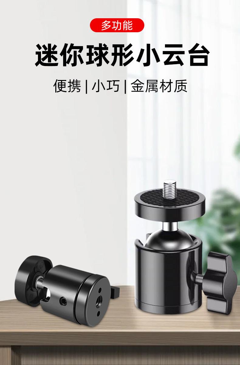 Trípode de cabeza de metal al por mayor de fábrica, luz de relleno de cabezal pequeño de metal, cabezal giratorio esférico de un solo orificio y tres orificios