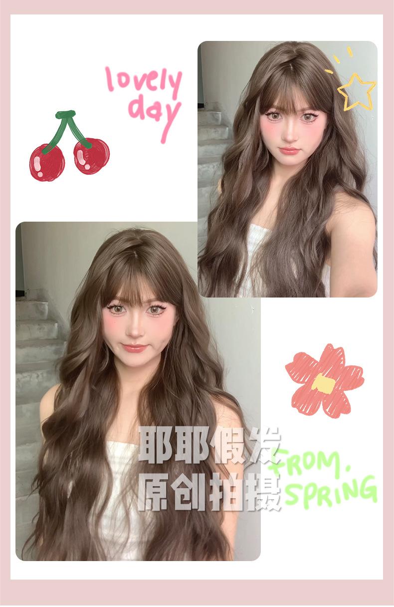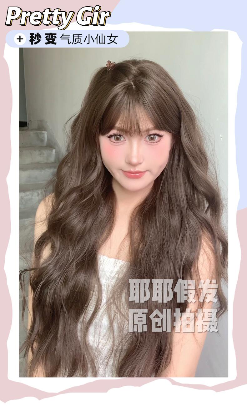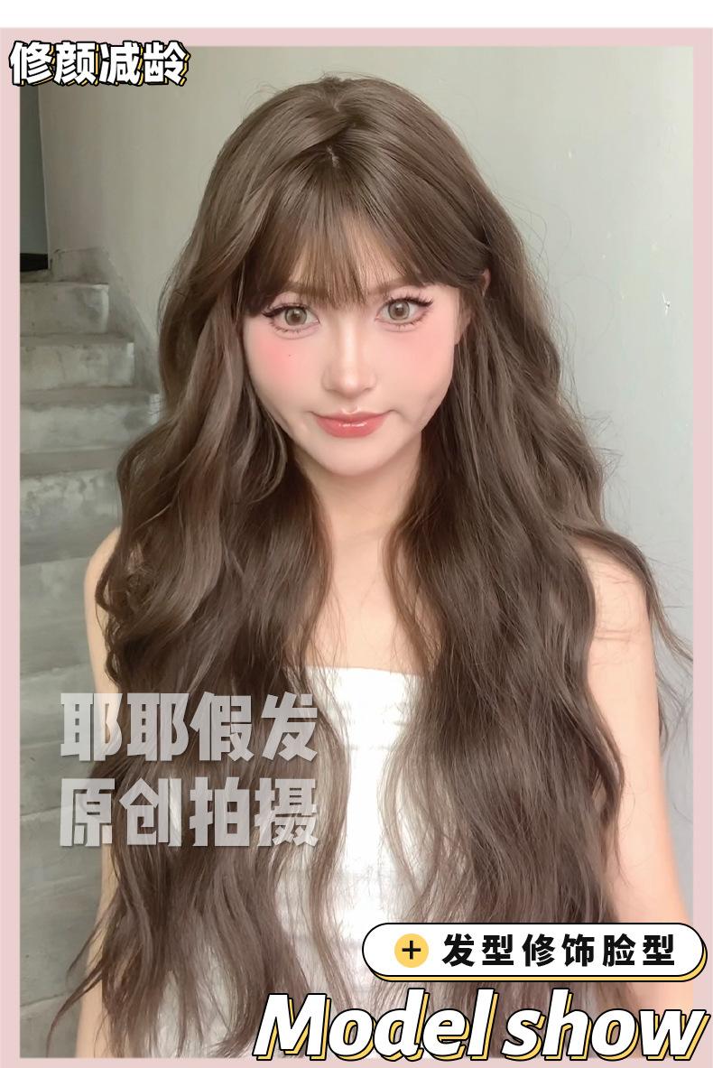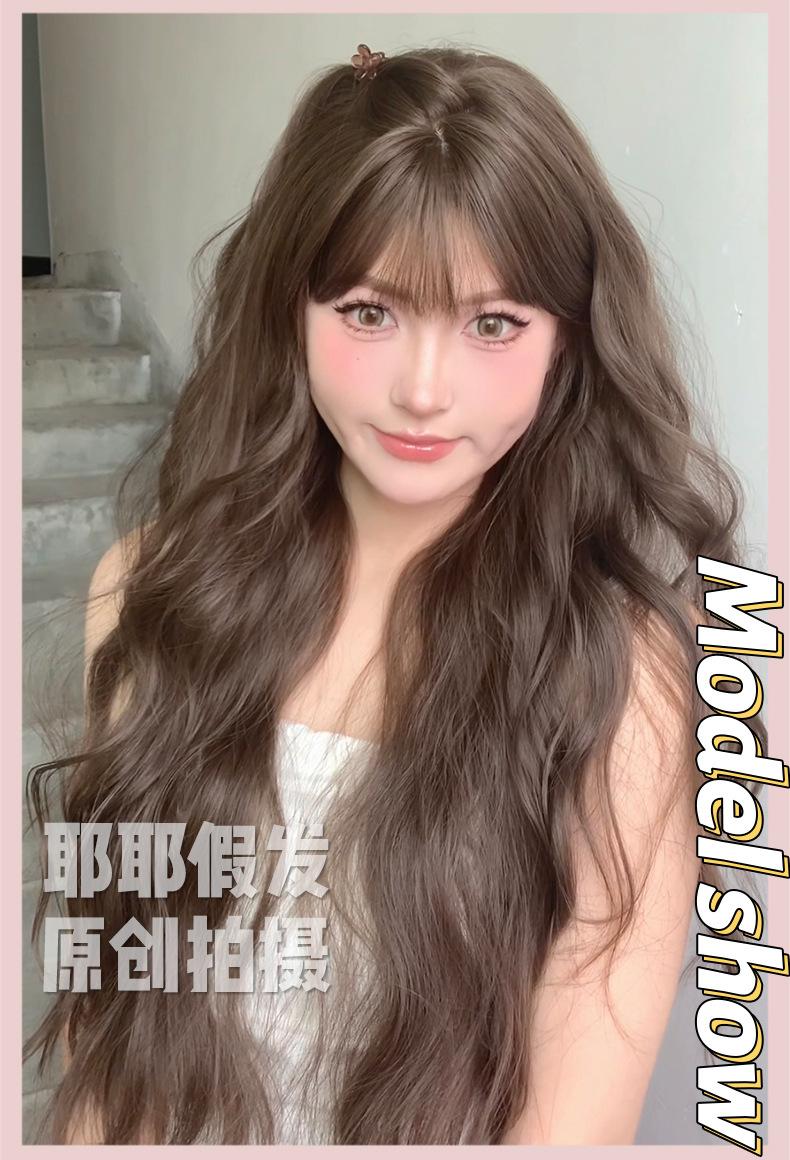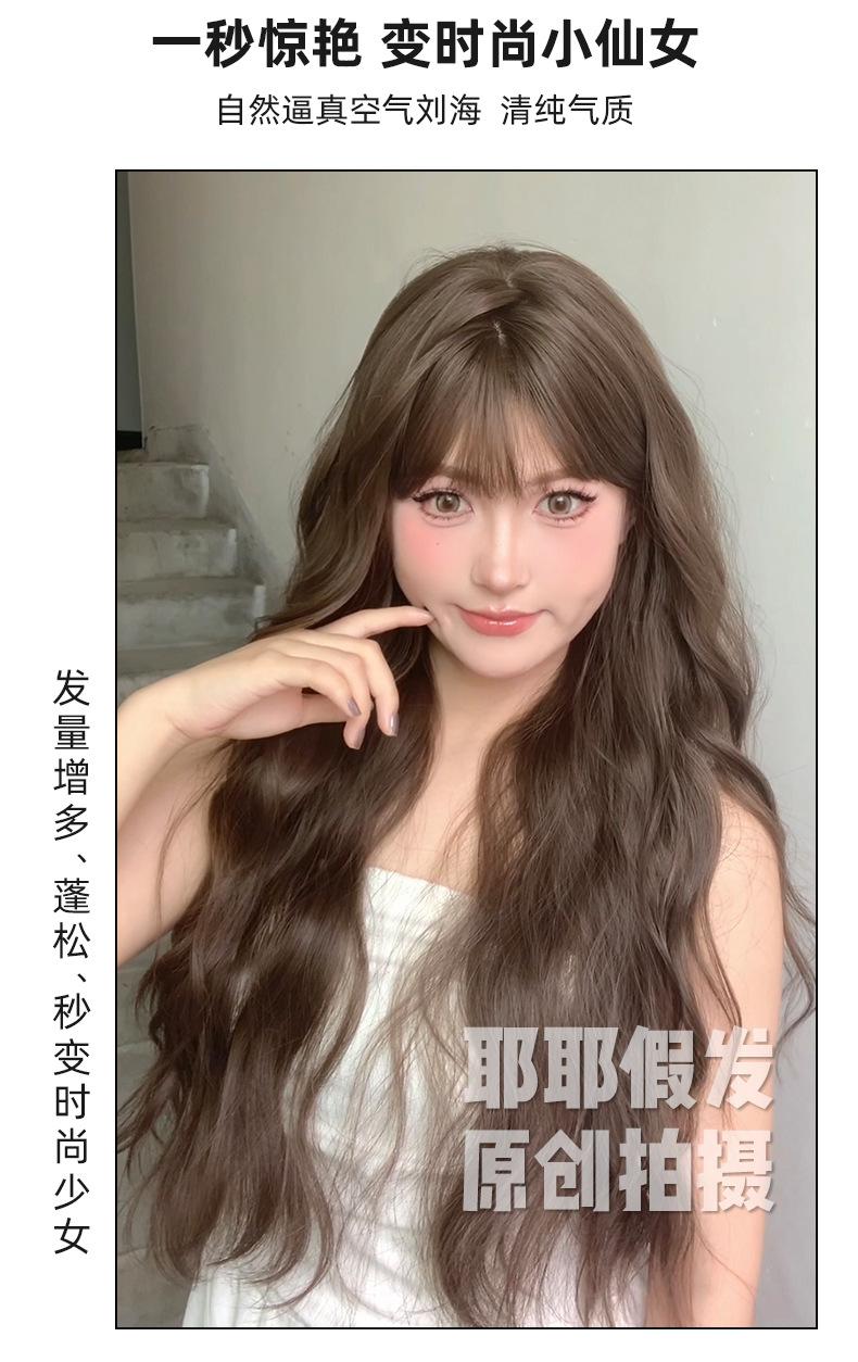 Peluca Yea para mujer, cabello largo y rizado, lolita, peluca realista con flequillo de aire, peluca de cobertura completa