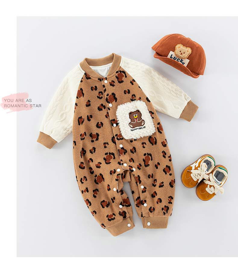 Ropa de otoño para bebé, mono de bebé nuevo, ropa de bebé de dibujos animados, ropa de primavera y otoño para recién nacidos de clase A, ropa de escalada con estampado de leopardo