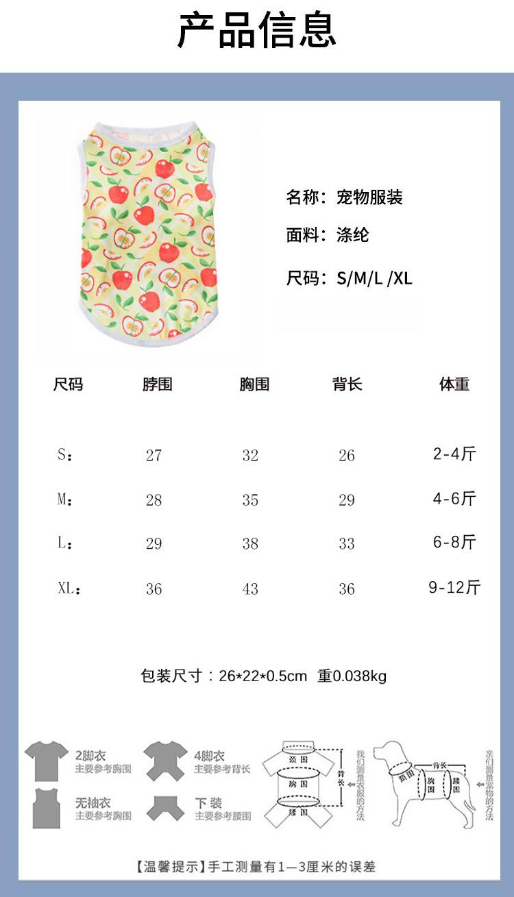 Ropa de verano para mascotas, nueva y directa de fábrica, ropa para perros y gatos, chaleco con estampado de dibujos animados