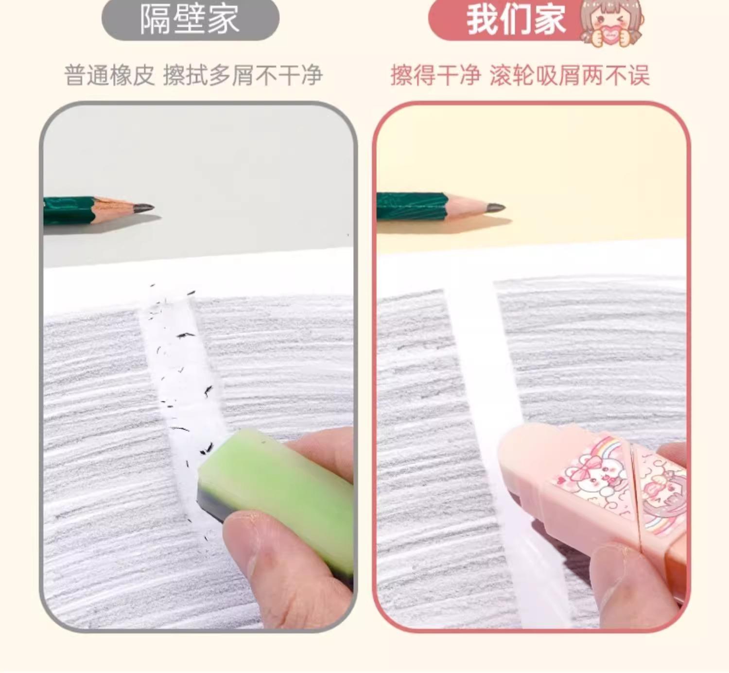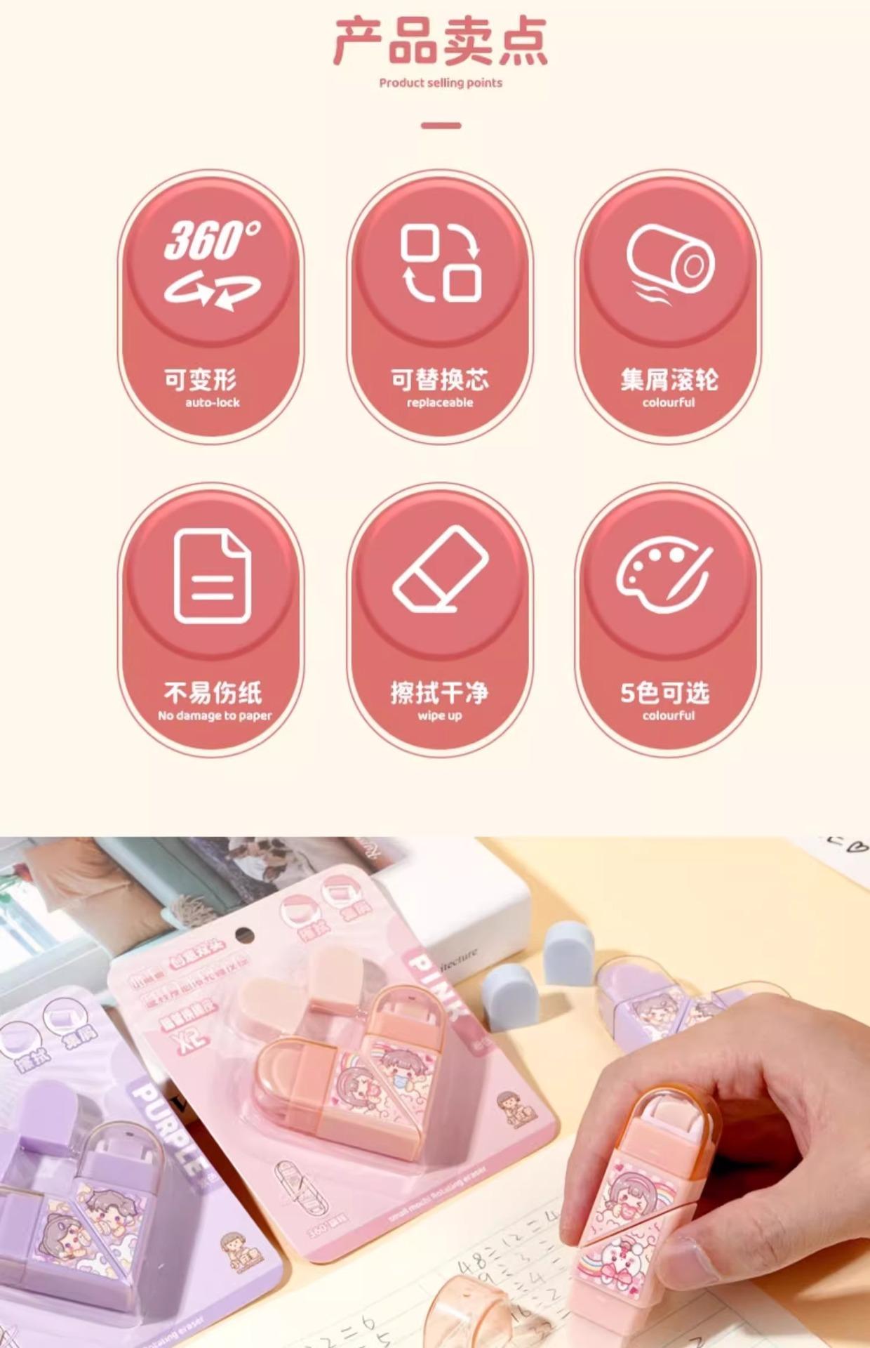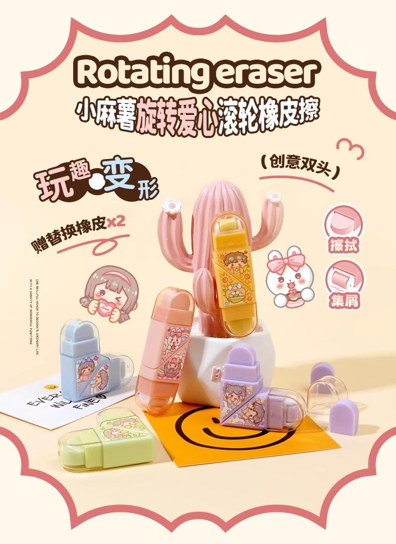 Rotating love roller rubber-pink (single), Rotating love roller eraser-purple (single), Rotating love roller r...