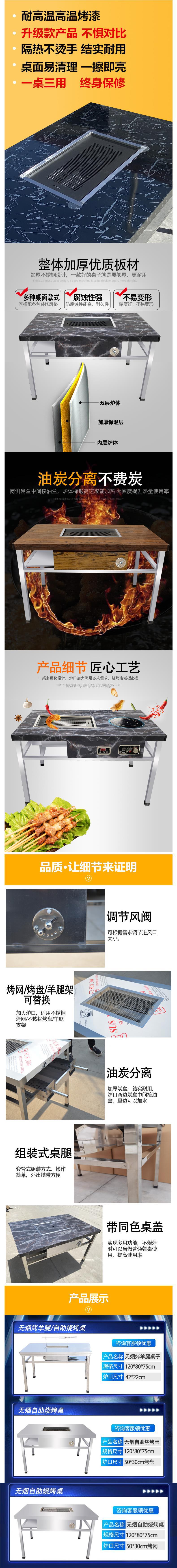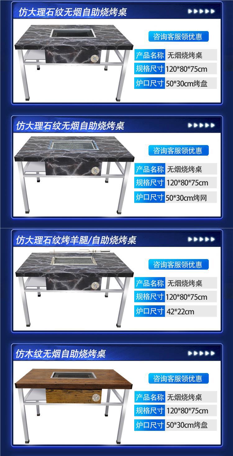 Mesa de barbacoa sin humo Mesa de barbacoa comercial de acero inoxidable Autoservicio Patio al aire libre Parrilla eléctrica Pierna de cordero a la parrilla de carbón
