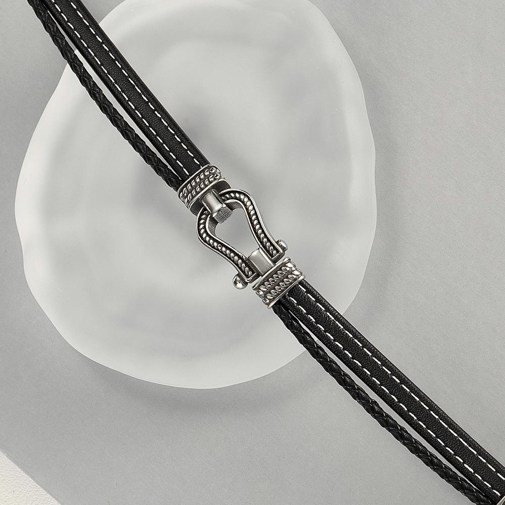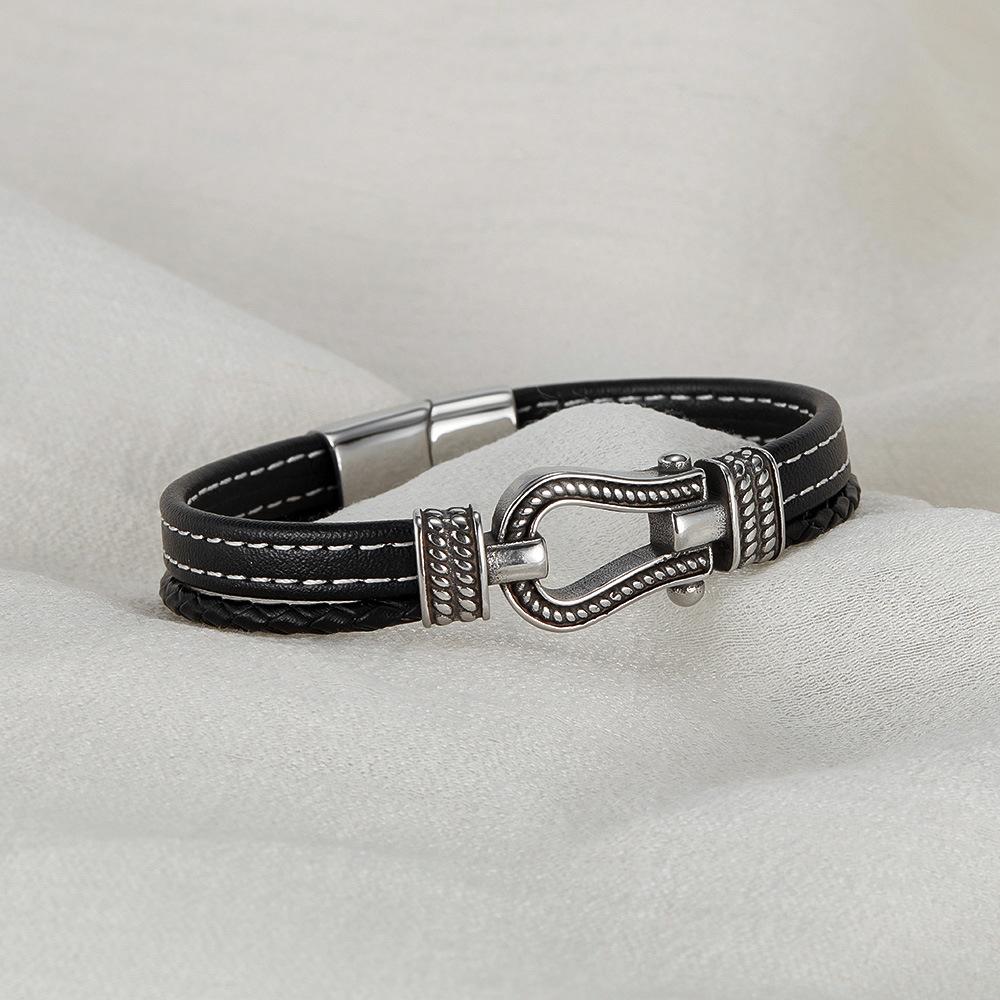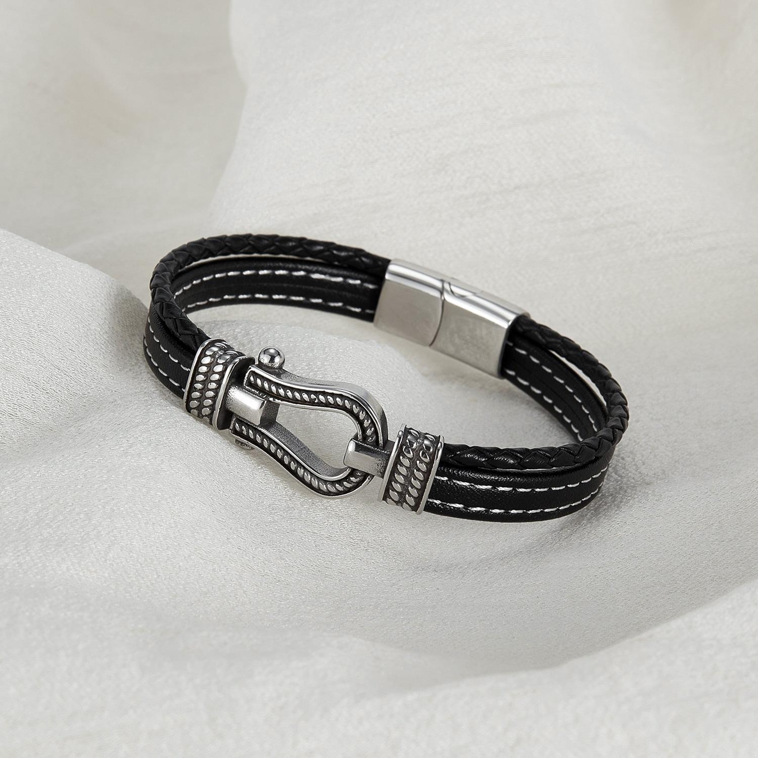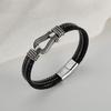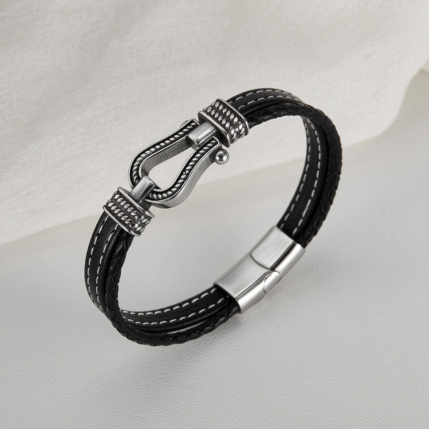Pulsera de Cuero Creativa de Moda Transfronteriza Europea y Americana Acero Inoxidable Hebilla de Herradura Accesorios Tejido de Doble Capa Pulsera de Cuero para Hombre