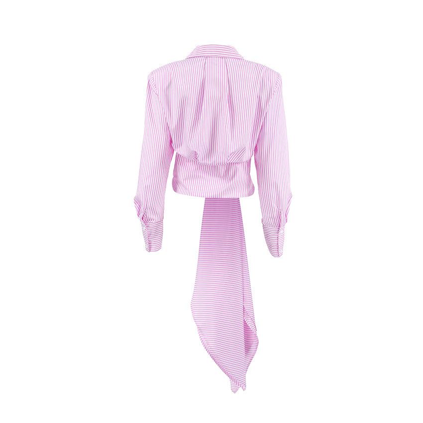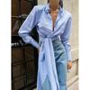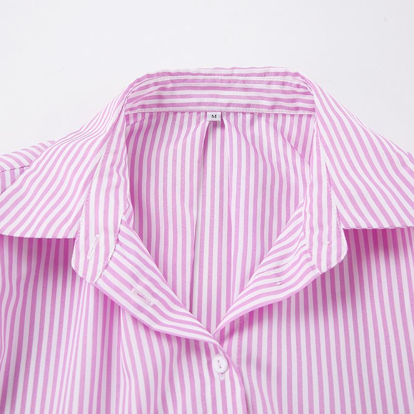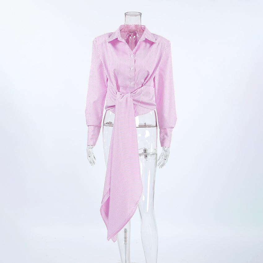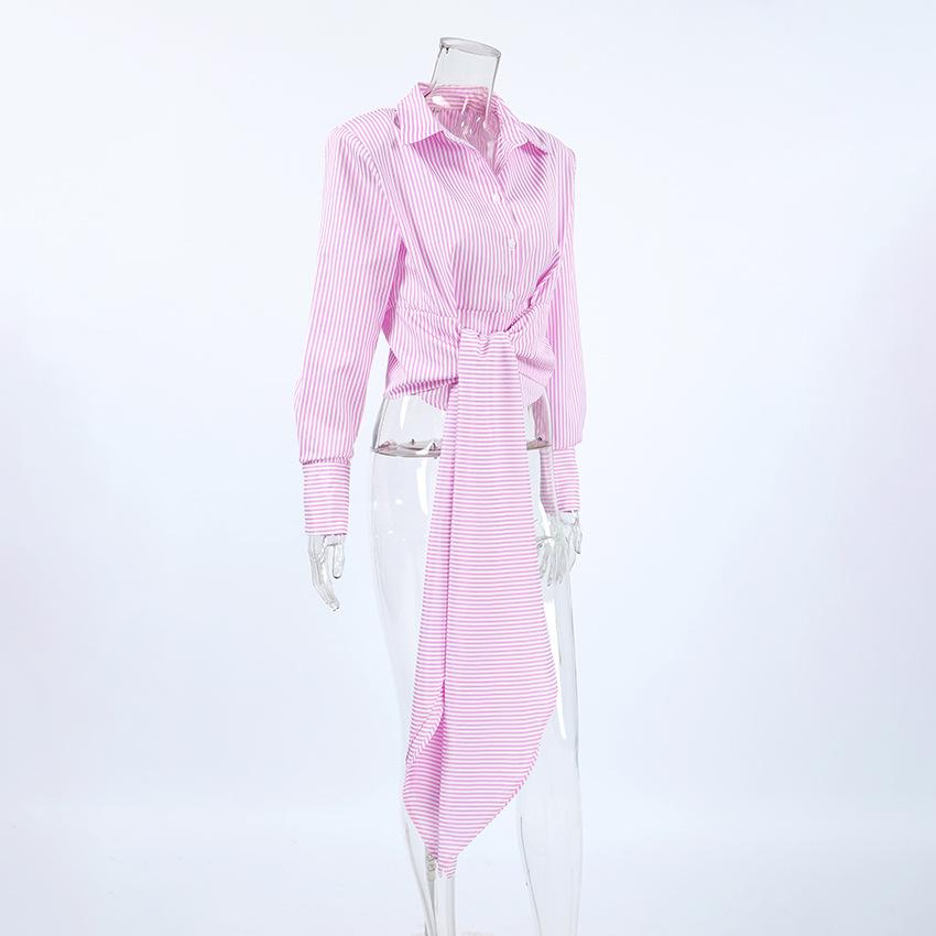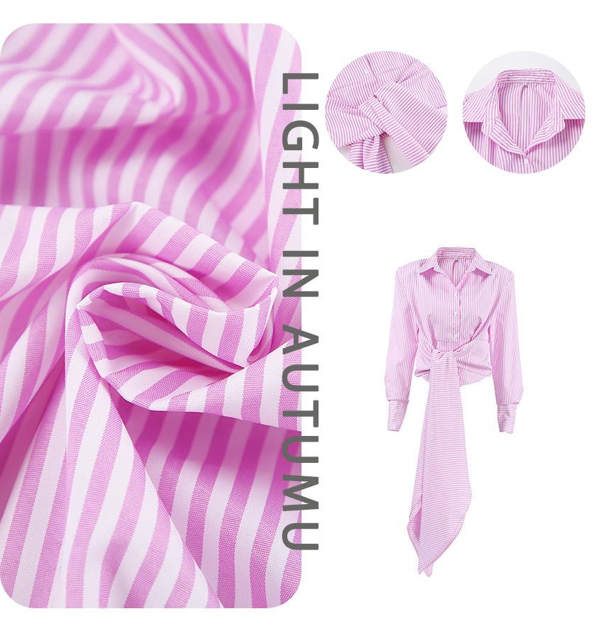 Diseño Europeo y Americano Cintura con Cordones Camisas Versátiles para Mujer 2025 Otoño e Invierno Nuevos Tops Rayados Nicho Transfronterizo para Mujer