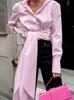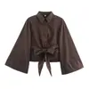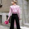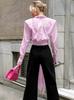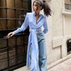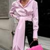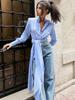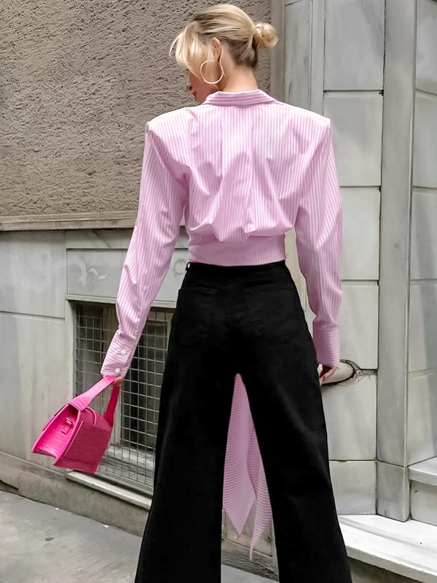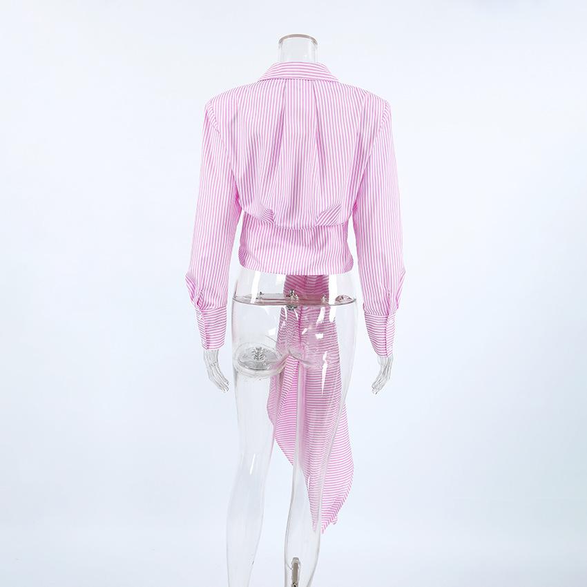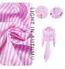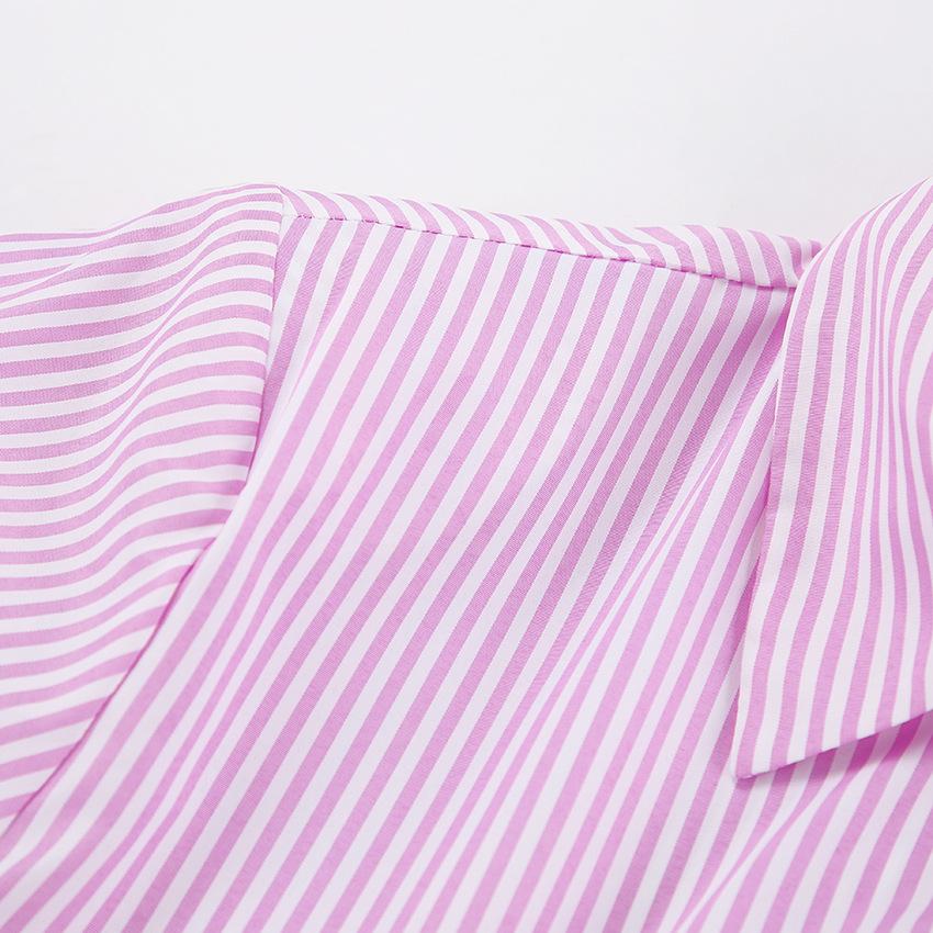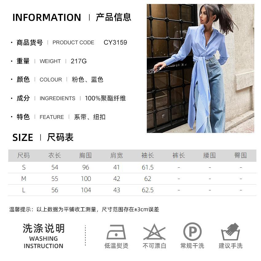 Diseño Europeo y Americano Cintura con Cordones Camisas Versátiles para Mujer 2025 Otoño e Invierno Nuevos Tops Rayados Nicho Transfronterizo para Mujer
