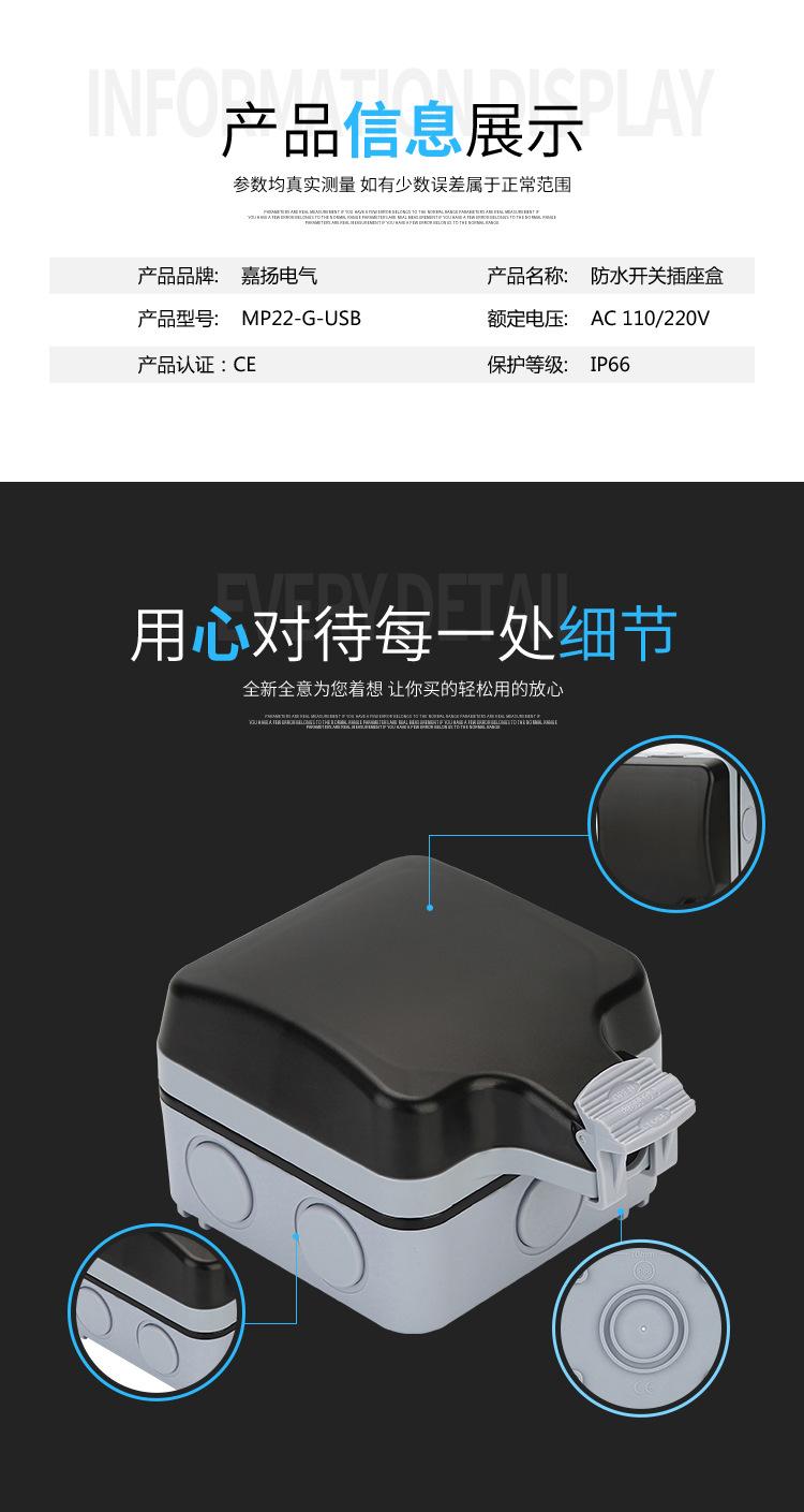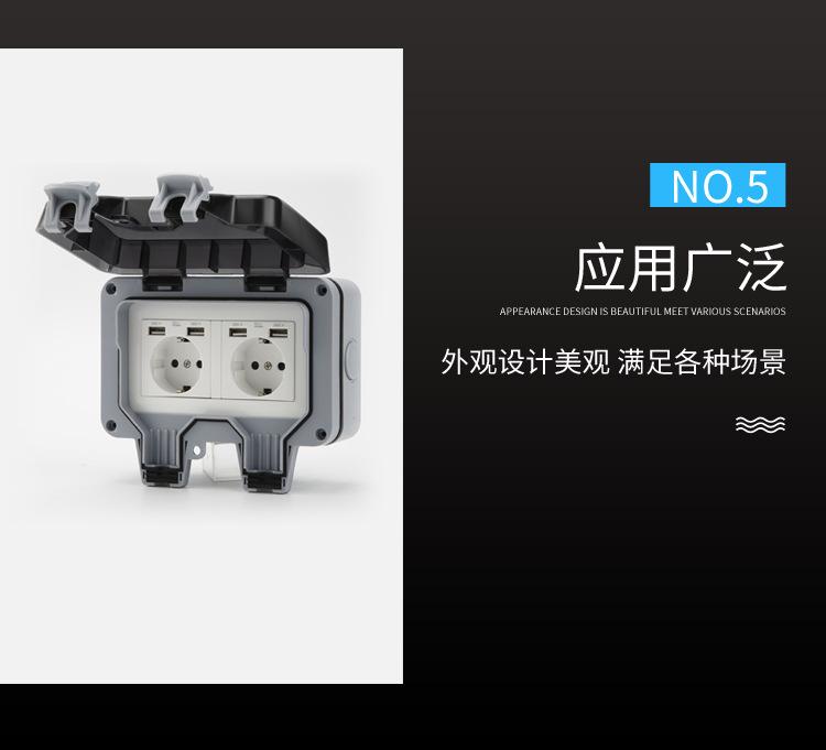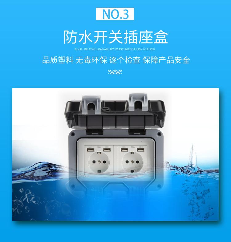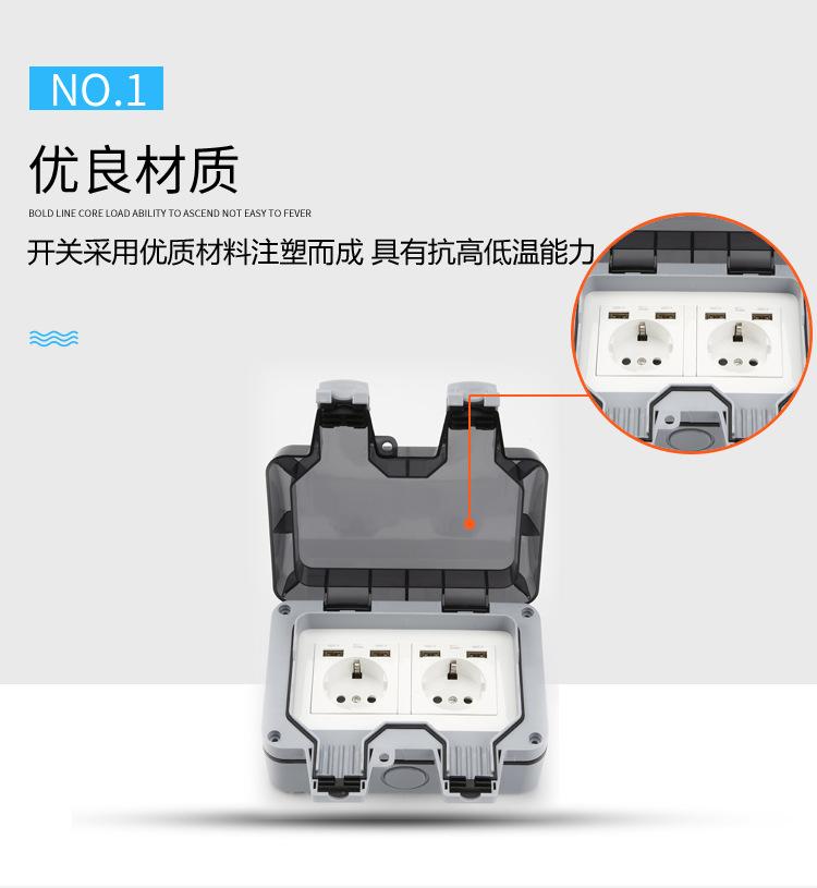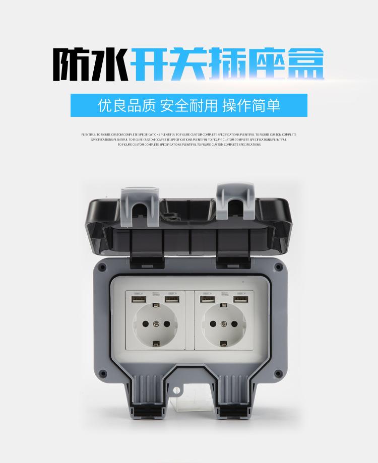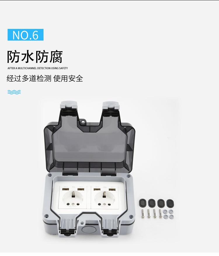 Suministro directo de fábrica, enchufe alemán doble impermeable para exteriores, enchufe USB de calibre europeo, caja de enchufe con interruptor impermeable