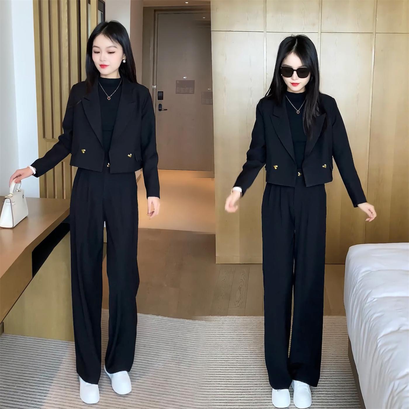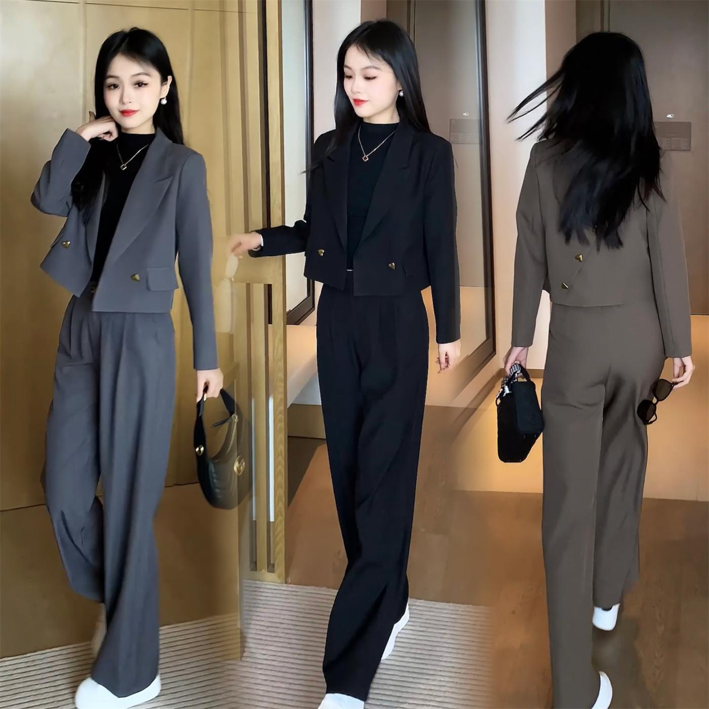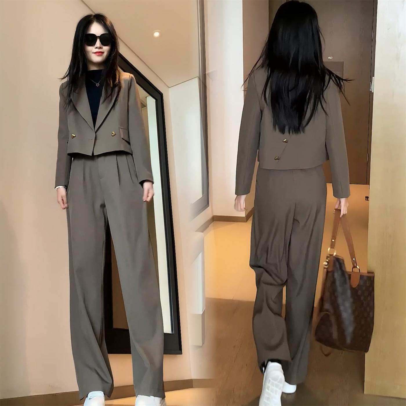 Traje Profesional de Moda al por Mayor para Mujer Otoño 2025 Nuevo Chaqueta de Traje Corta Pequeña Pantalones de Pierna Recta Conjunto de Dos Piezas