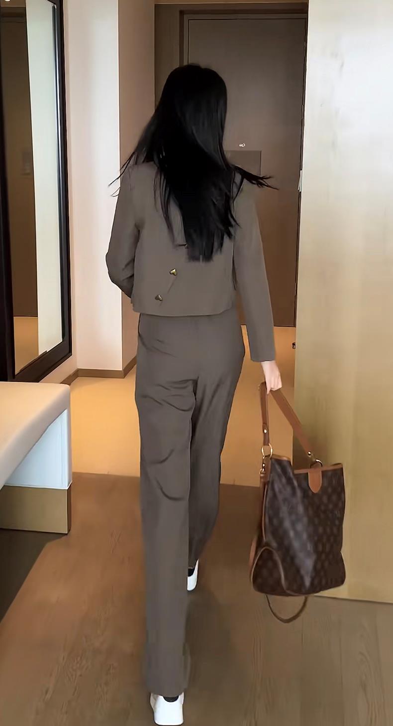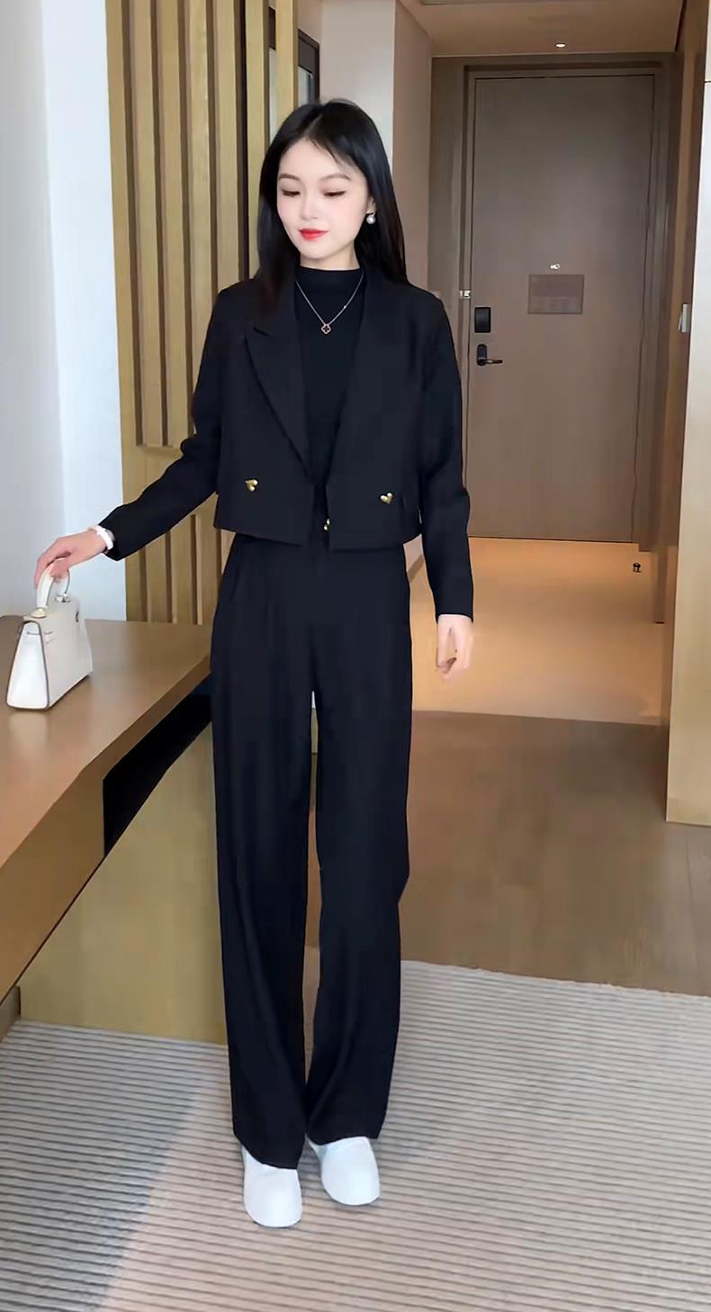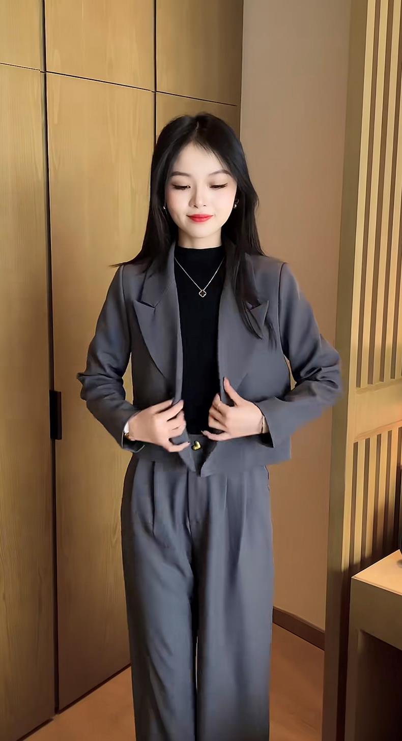 Traje Profesional de Moda al por Mayor para Mujer Otoño 2025 Nuevo Chaqueta de Traje Corta Pequeña Pantalones de Pierna Recta Conjunto de Dos Piezas