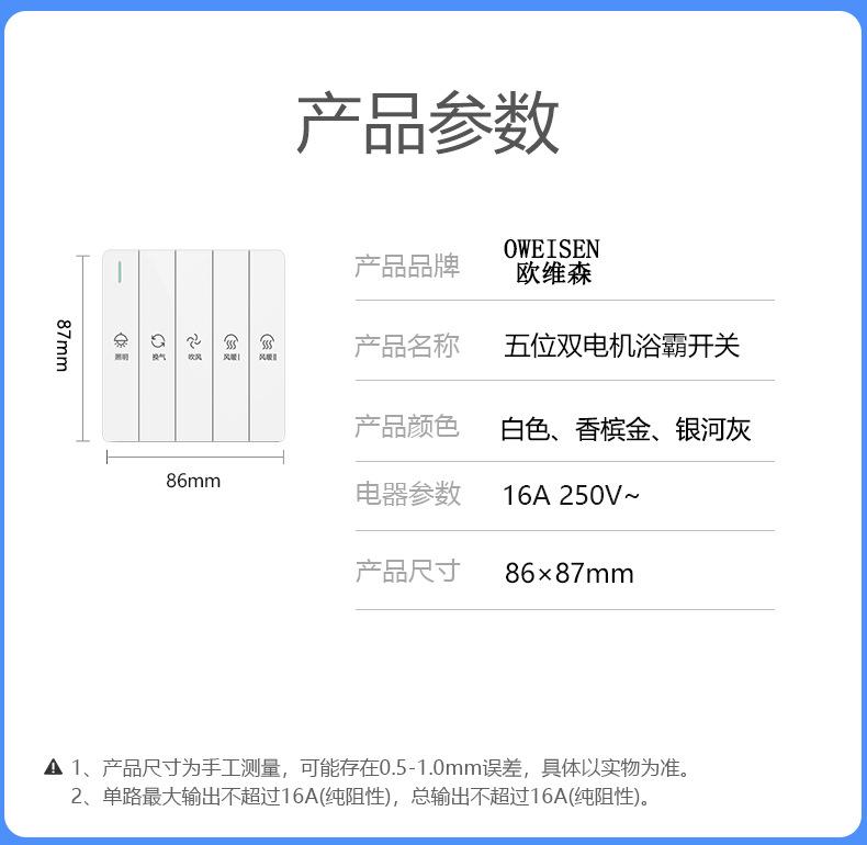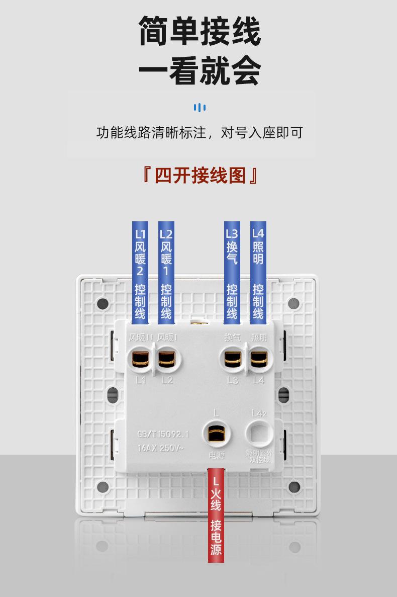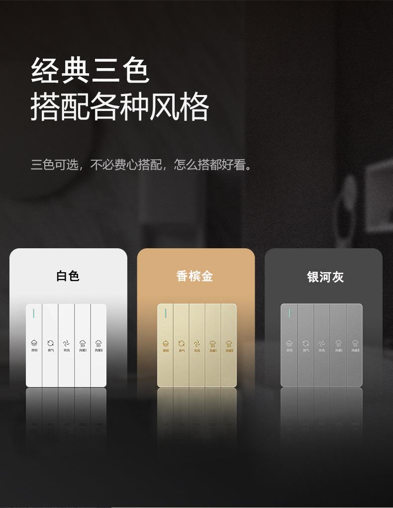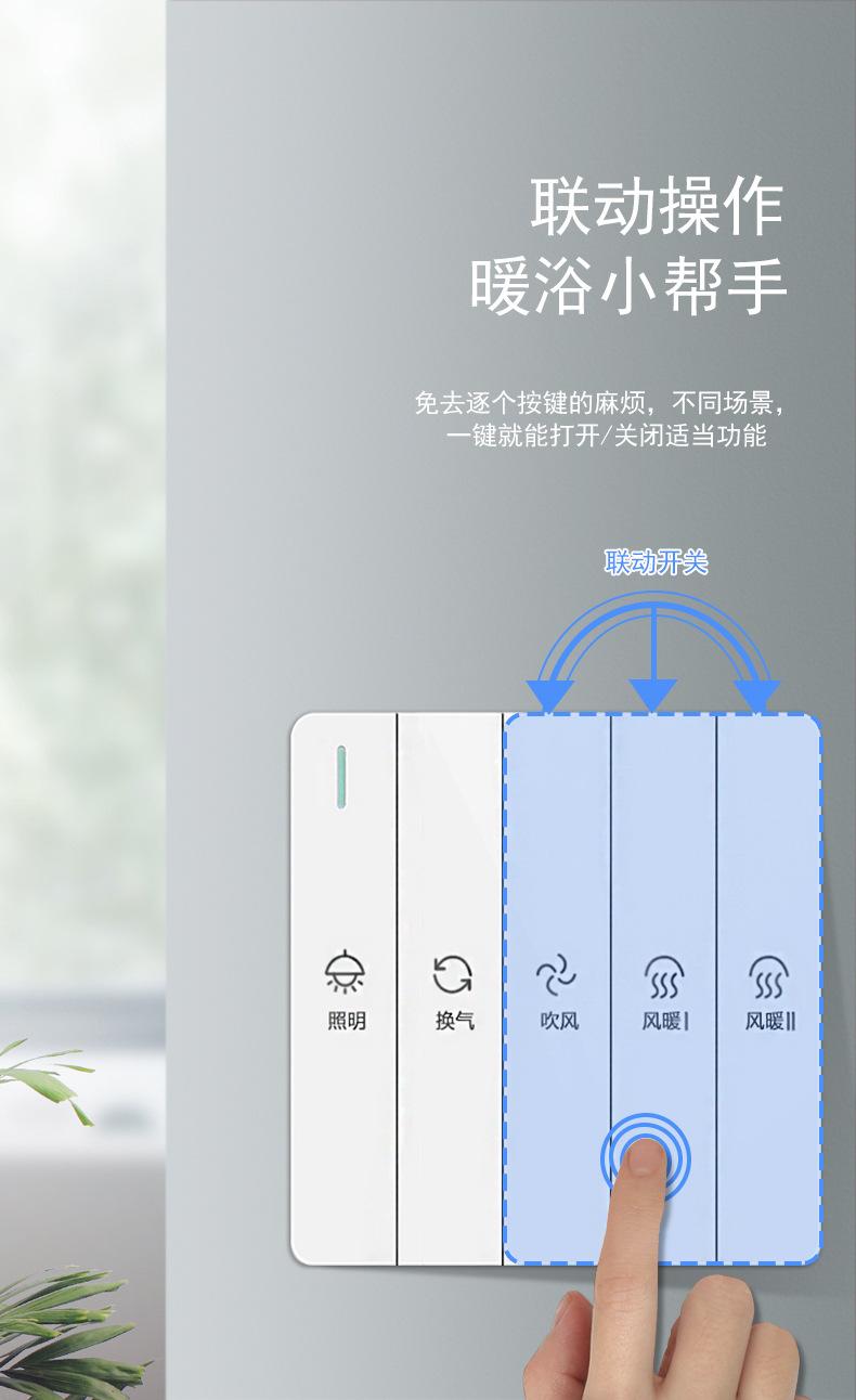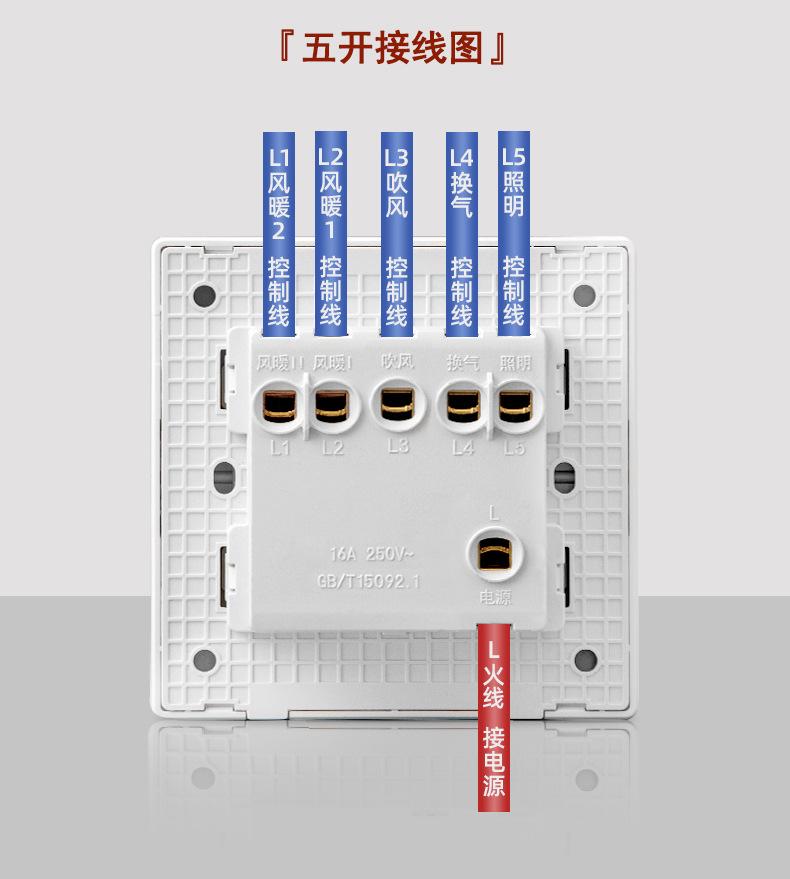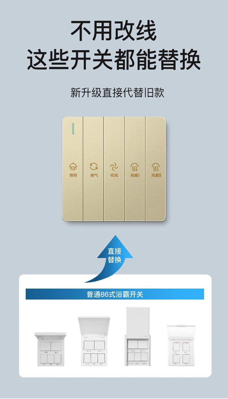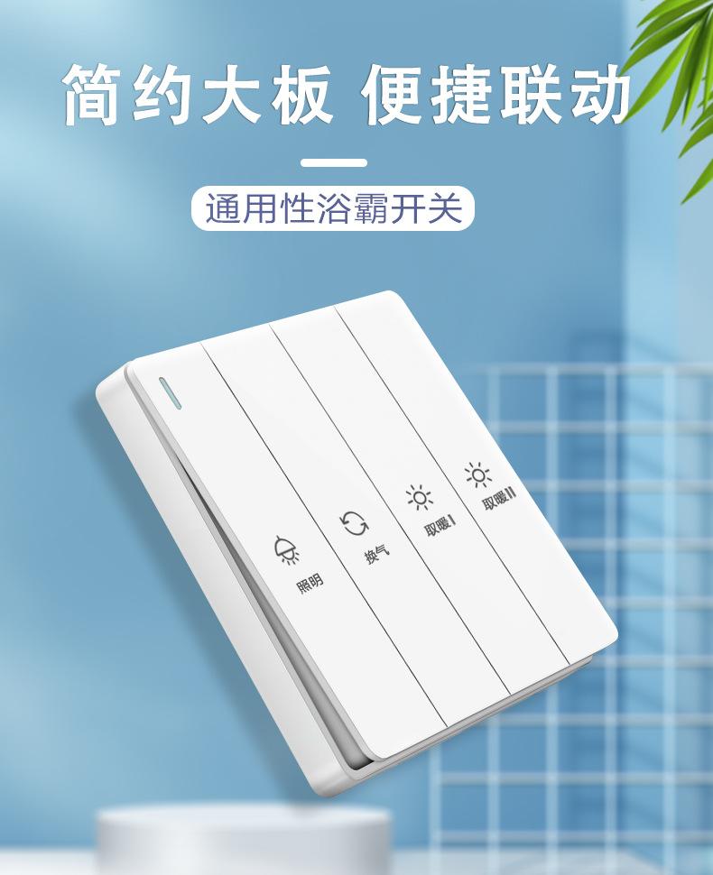 Interruptor de llave universal tipo 86 para calentador de baño, cinco abiertos, cuatro abiertos, interruptor de baño, aire caliente, panel de interruptor de baño 5 en 1