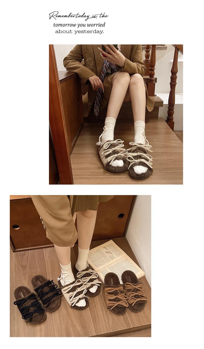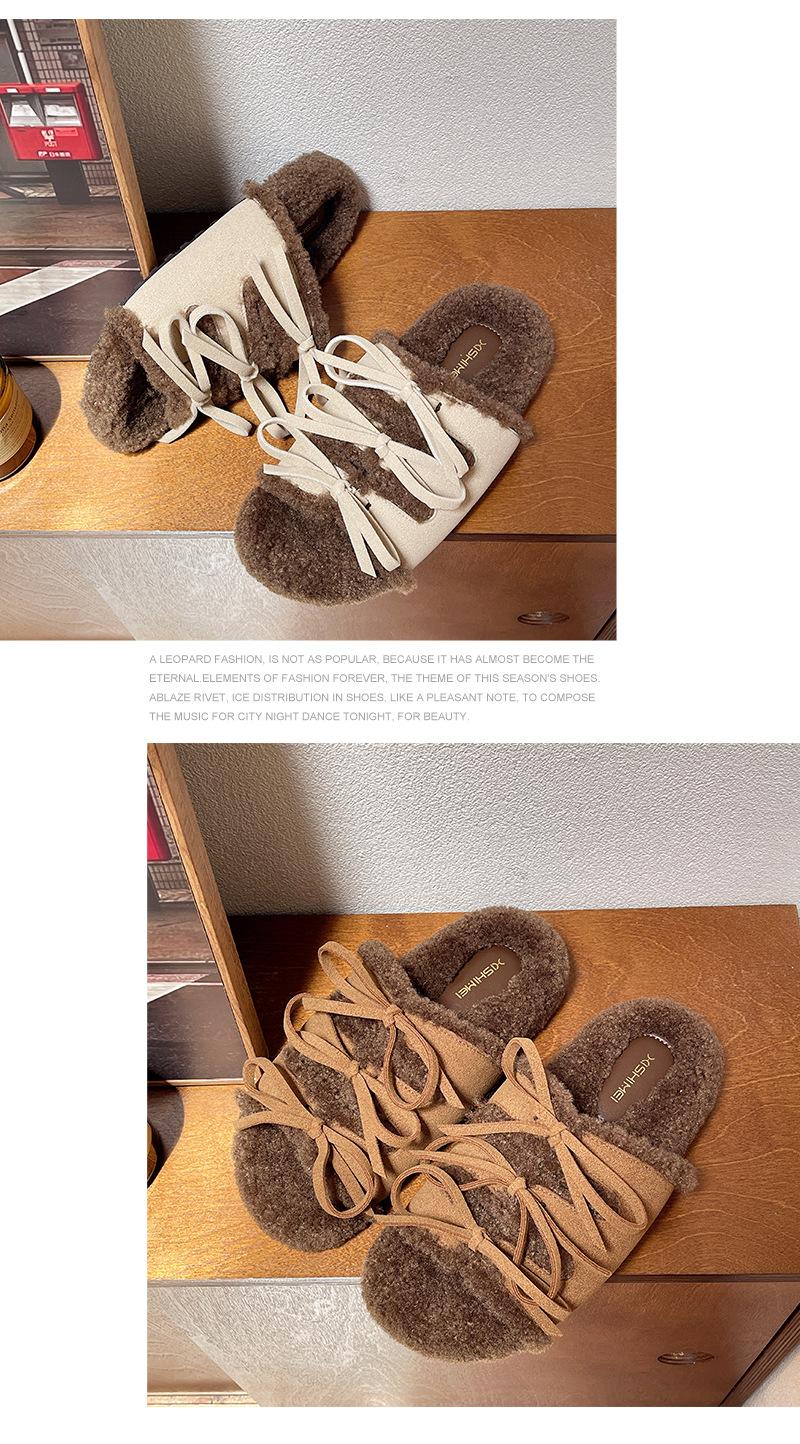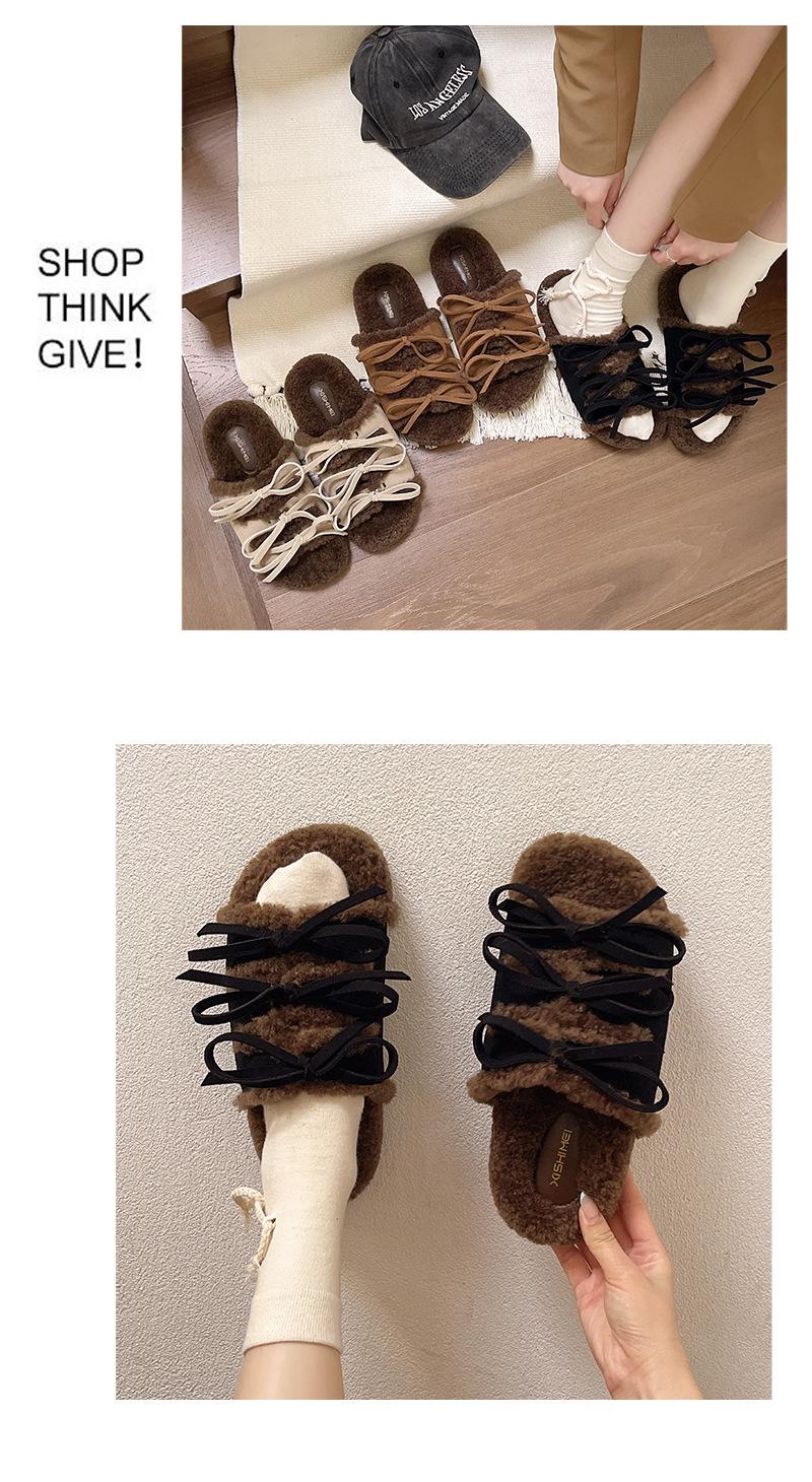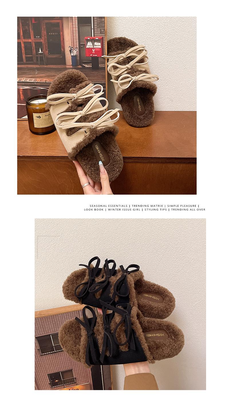 Zapatillas de Moda con Lazo Mao Mao para Mujer para Exterior 2024 Nuevo Otoño e Invierno Felpa Enrollada Birkenn Combinan con Todo Zapatos Mao Mao